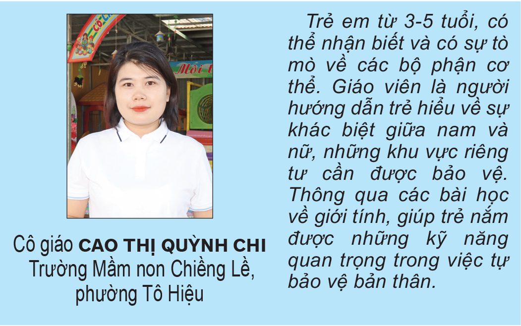 V dnešní době se sexuální výchova zavádí již od předškolní úrovně, tedy ve stádiu, kdy si děti začínají uvědomovat své tělo a svět kolem sebe. V mateřské škole Chieng Le v okrese To Hieu se v závislosti na věku vypracovávají vhodné plány výuky, které jsou kombinovány s mimoškolními aktivitami, životními dovednostmi a zážitkovými aktivitami, aby se děti naučily chránit se. Děti se účastní aktivit sexuální výchovy, učí se o různých částech těla mužů a žen. Prostředí třídy, od toalet až po šatny, je také rozděleno na oddělené prostory pro muže a ženy, což u dětí formuje povědomí a zvyk chránit své soukromí a soukromí svých okolí.