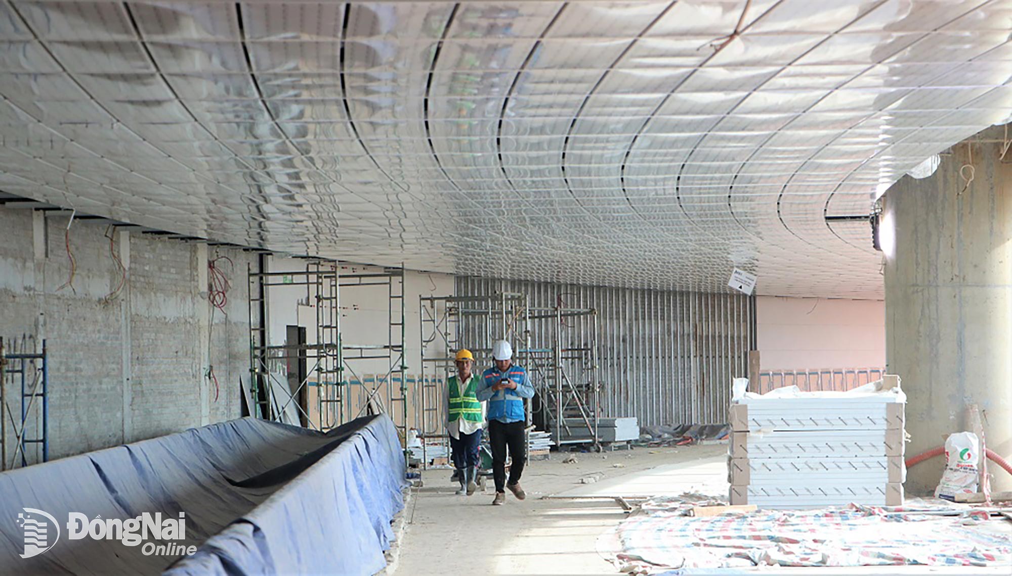 | Terminál pro cestující, „srdce“ letiště Long Thanh, vstupuje do závěrečné fáze výstavby. Mnoho částí stropu terminálu je dokončeno. Foto: Pham Tung |