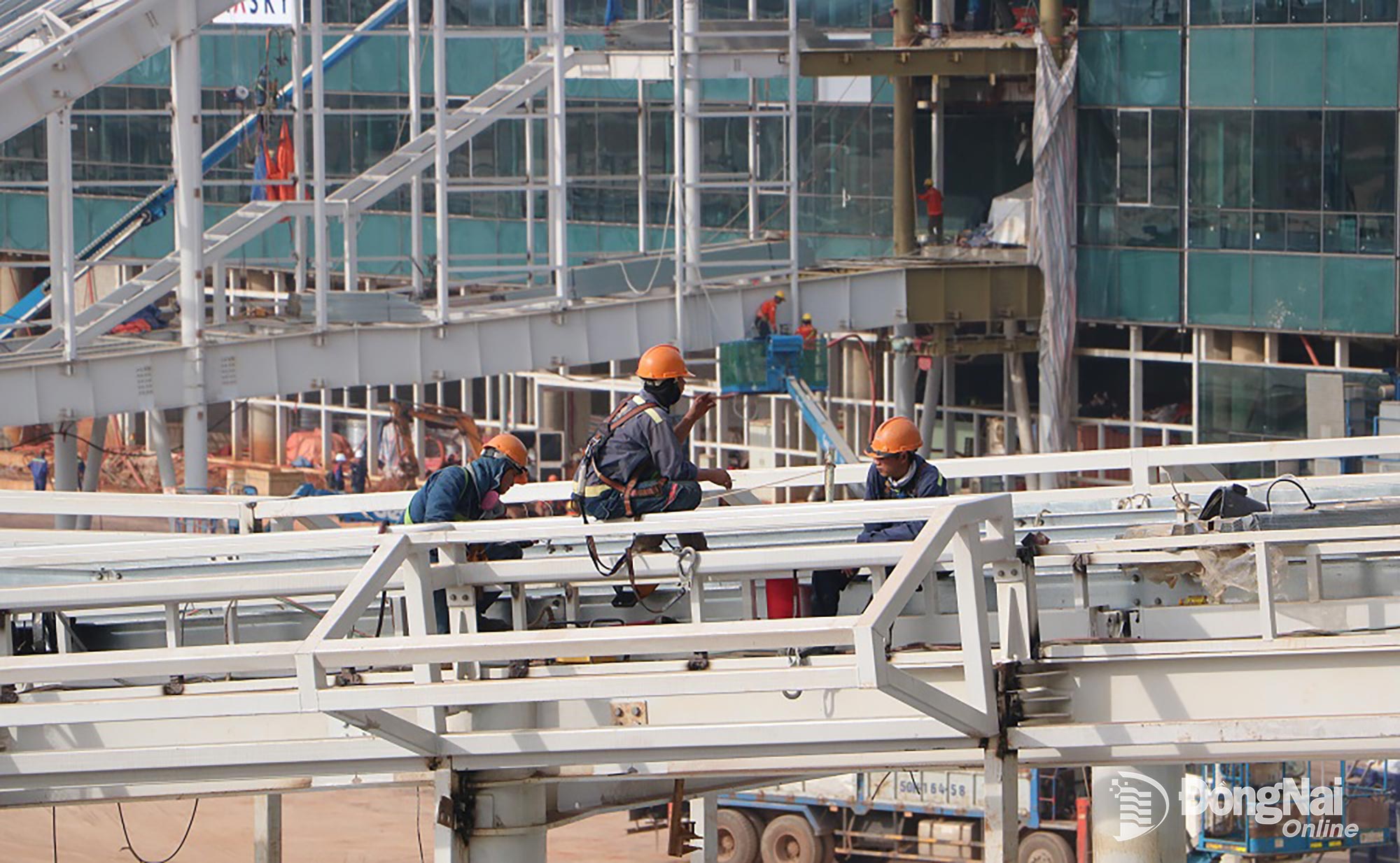 | Dělníci staví most pro cestující na letišti Long Thanh. Foto: Pham Tung |