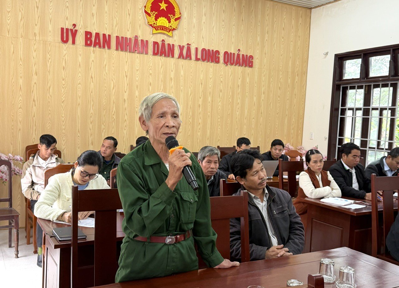Na schůzi předseda lidového výboru obce Long Quang Nguyen Anh projednal a zodpověděl obavy voličů. Pokud jde o plánování hřbitovů, po sloučení 3 obcí (Thuong Long, Thuong Quang, Huong Huu) do nové obce vybírají vedoucí představitelé obce místo pro vybudování hřbitova, který bude co nejdříve sloužit potřebám lidí. Pan Nguyen Anh také uvedl, že po nedávných silných deštích obec přezkoumává a vypracovává statistiky, aby nejprve odstranila škody na podzemních přepadech, mostech, silnicích, odvodnění, mostních opěrách, zavlažovacích zařízeních atd., a požádal městský lidový výbor o podporu financování dlouhodobých oprav a modernizace těchto zařízení.