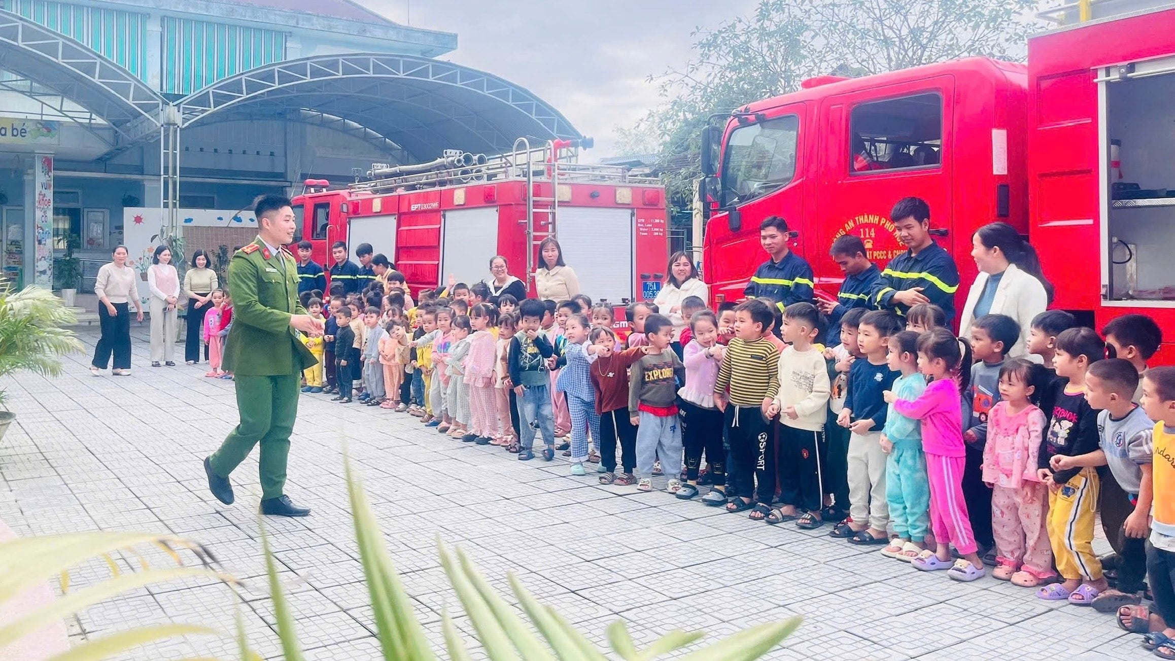 | Hasičští a záchranáři instruují v mateřské škole Phong Chuong II. evakuační techniky v případě požáru. Foto: TH |
