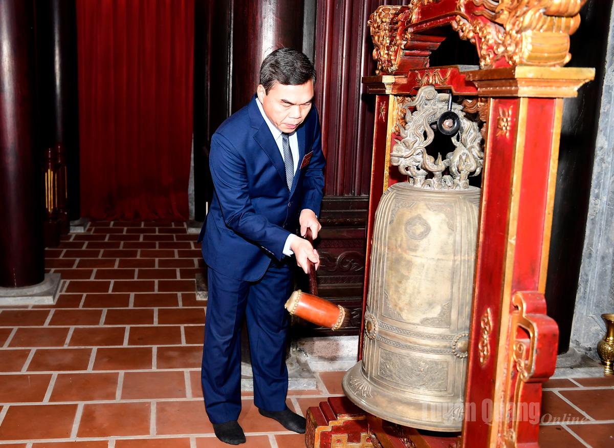 | Soudruh Ma The Hong, zástupce tajemníka provinčního výboru strany a předseda provinčního výboru Vietnamské vlastenecké fronty, zazvonil na zvonek, aby zahájil ceremoniál. |