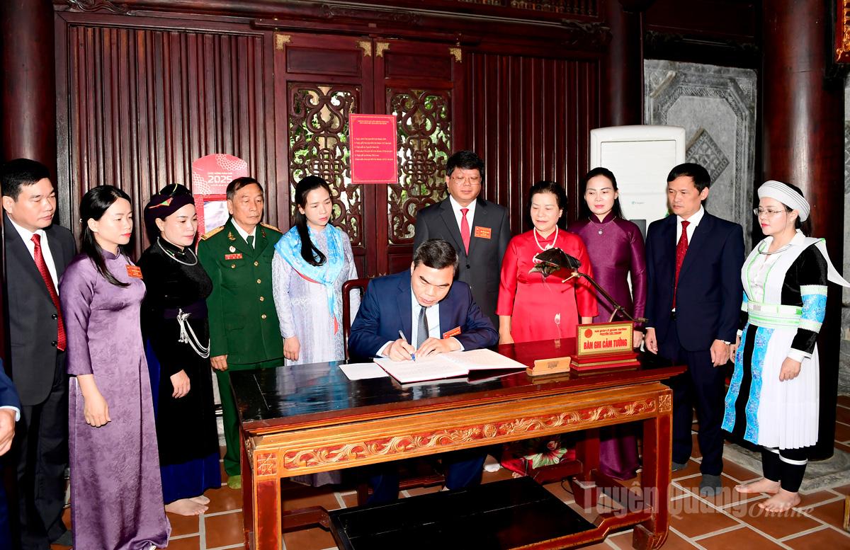 | Soudruh Ma The Hong, zástupce tajemníka provinčního výboru strany a předseda provinčního výboru Vietnamské vlasti, zapsal do Tradiční knihy v chrámu prezidenta Ho Či Mina. |
