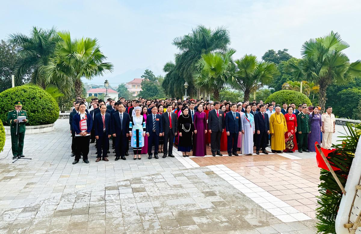 Delegace obětovala vonné tyčinky a květiny u Ho Či Minova chrámu a Památníku provinčních hrdinů a mučedníků. Před duchem prezidenta Ho Či Mina a hrdinů a mučedníků delegace s úctou obětovala květiny a vonné tyčinky a vyjádřila tak nekonečnou vděčnost za velký přínos velkého strýce Ho a národních hrdinů - vynikajících dětí, které zasvětily celý svůj život věci nezávislosti a svobody vlasti, pro štěstí lidu.