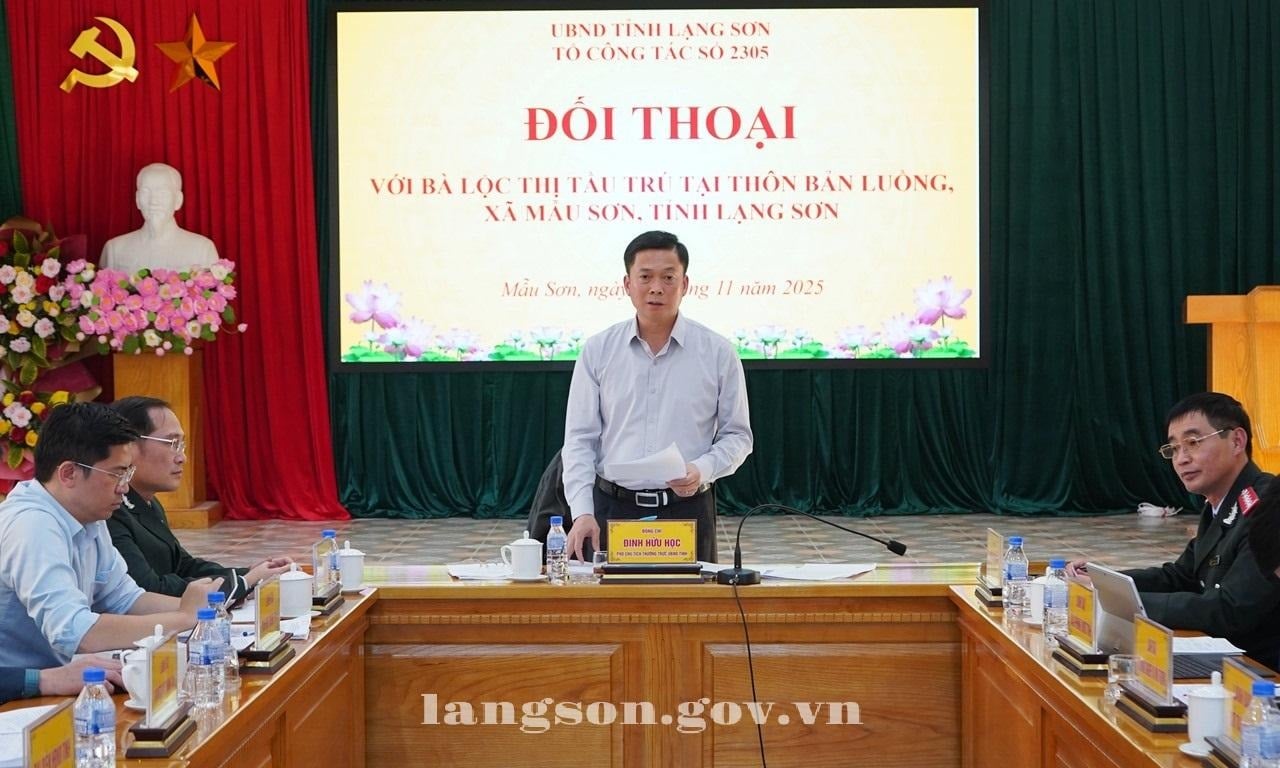 Soudruh Dinh Huu Hoc, stálý místopředseda Provinčního lidového výboru, ve svém projevu na dialogu uvedl, že výsledky inspekce a přezkumu ukázaly, že 4 případy, o jejichž vyřešení požádala paní Loc Thi Tau, byly důkladně prověřeny a přezkoumány; o výsledcích inspekce a přezkumu podrobně informoval soudruh hlavní inspektor provincie, zástupce vedoucího pracovní skupiny paní Tau a účastníci dialogu. U 3 případů spadajících pod jurisdikci Provinčního lidového soudu, nikoli pod jurisdikci státního orgánu, vydá Provinční lidový výbor dokument o ukončení projednávání. U zbývajícího 1 případu bude Lidový výbor obce Mau Son pokračovat v organizaci inspekcí, ověřování a objasňování původu, řízení a procesu užívání souvisejících subjektů, aby je znovu vyřešil v souladu se svou pravomocí a zákonnými ustanoveními.