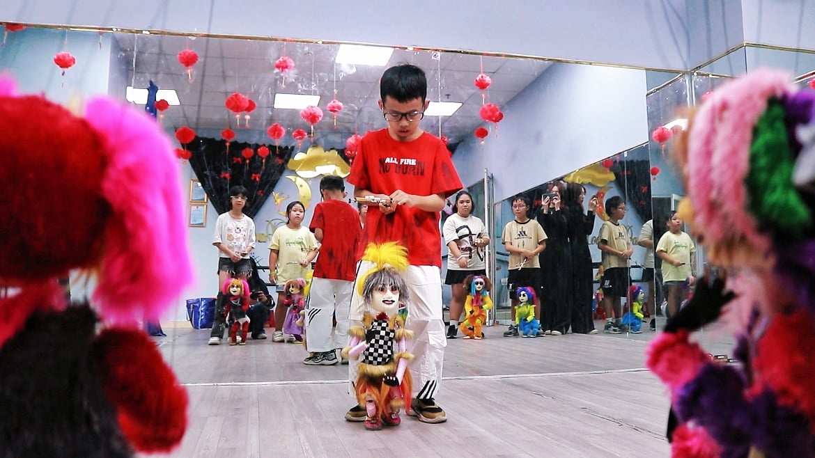 Atmosféra každé hodiny je vždy naplněna smíchem, pozornýma očima a nadšením cvičících studentů. Když hraje hudba, loutky v barevných kostýmech okamžitě „ožívají“ v zábavných pohybech.