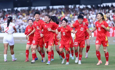 Odpoledne 12. listopadu porazily vietnamské ženské týmy Myanmar 2:0 a zajistily si tak první místo ve skupině B ženského fotbalového turnaje na 33. hrách SEA. Jejich soupeřem v semifinále bude Indonésie.