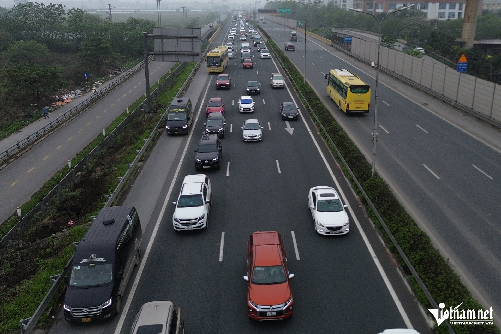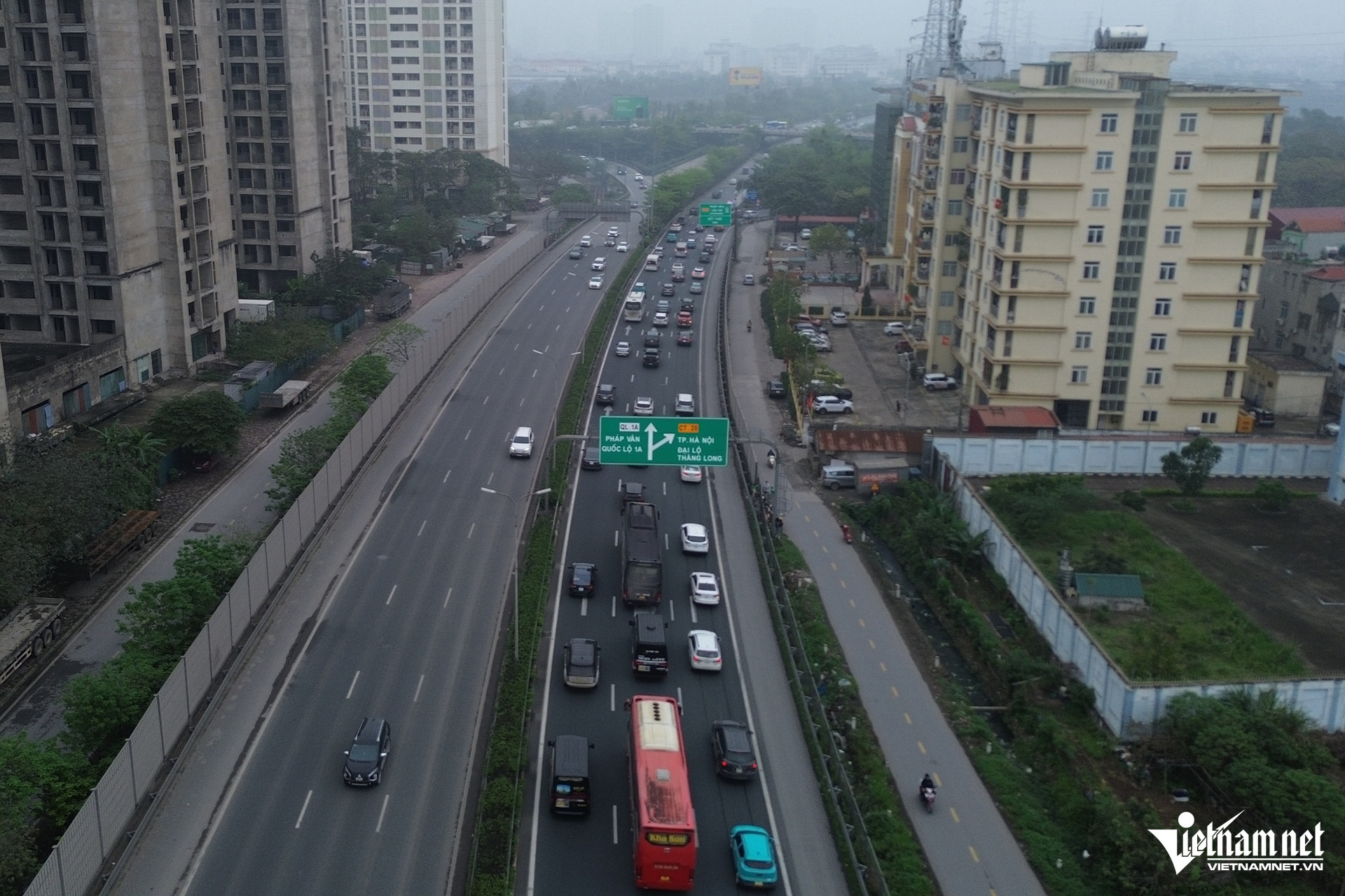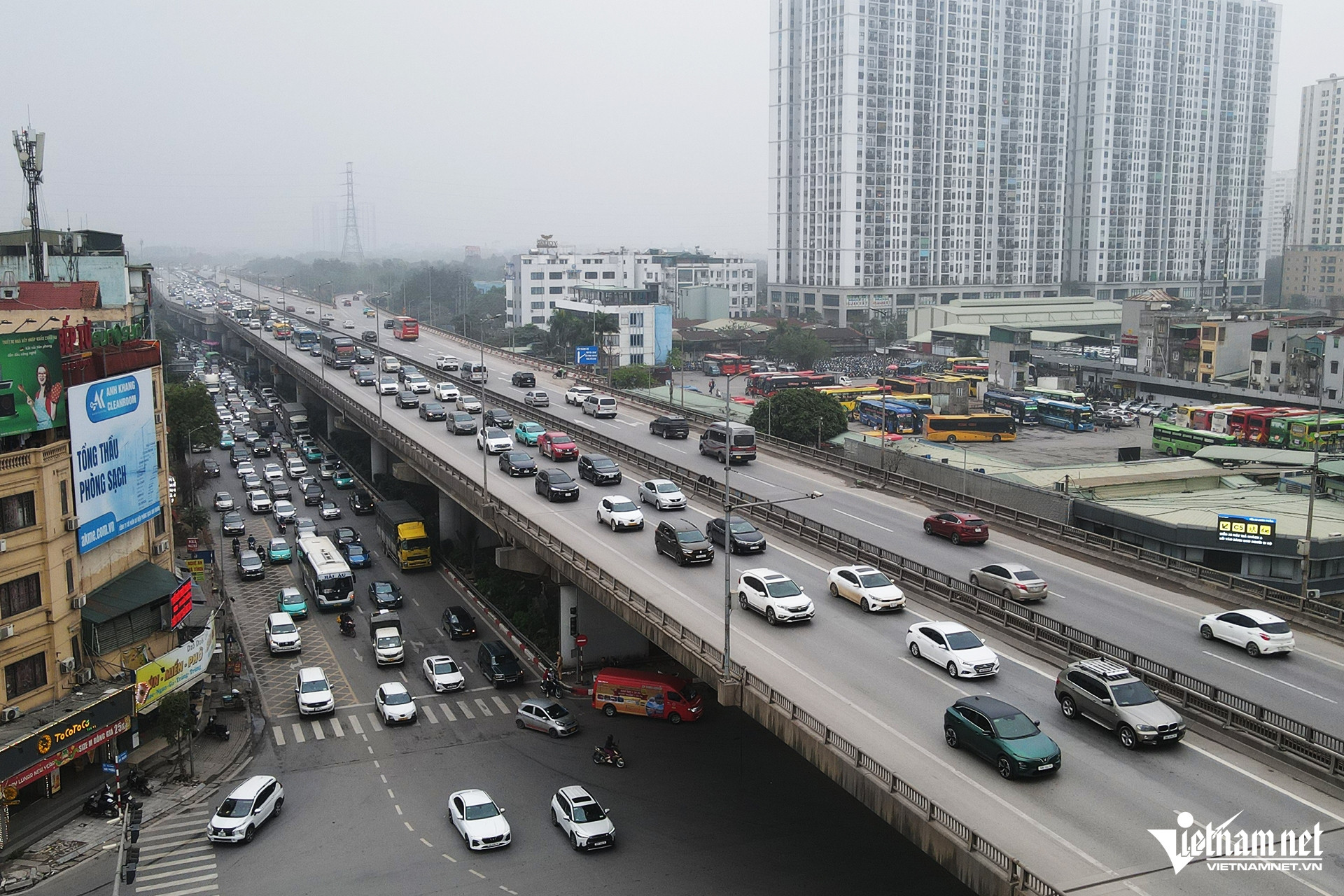 Na konci dálnice Phap Van - Cau Gie, směrem do centra města a na estakádu č. 3, se doprava pohybovala pomalu a byla v délce asi 2 km zablokovaná.