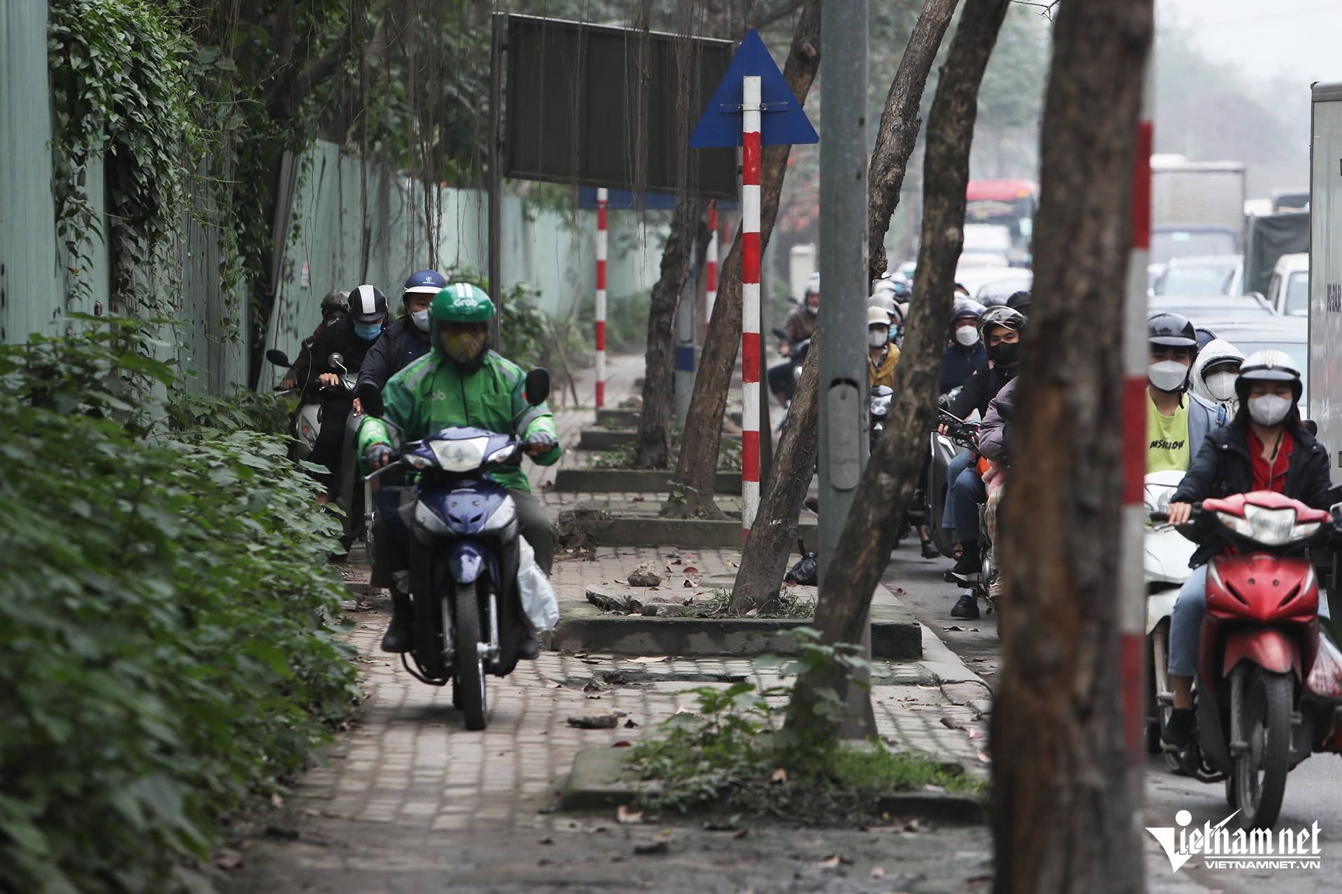 Přestože jsou zdejší chodníky hrbolaté a obtížně se po nich chodí, mnoho lidí se po nich stále snaží chodit, aby se „vyhnuli“ dopravním zácpám.