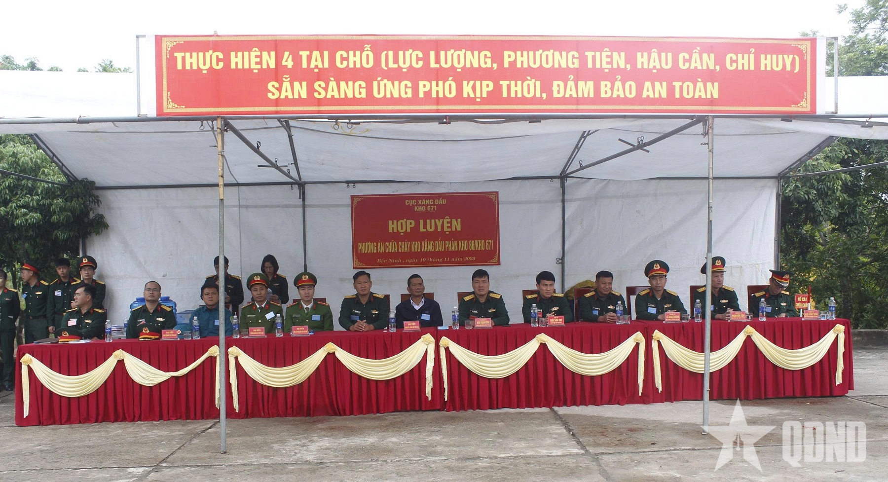 Společného cvičení se zúčastnili a navštívili soudruzi ze stranického výboru, velitel skladu 671, zástupci ropného oddělení; zástupci požární, hasičské a záchranné policie (PCCC&CNCH) provincie Bac Ninh ; zástupci stranického výboru, místních úřadů a policejních sborů, milice a sil sebeobrany obce Tien Luc v provincii Bac Ninh.