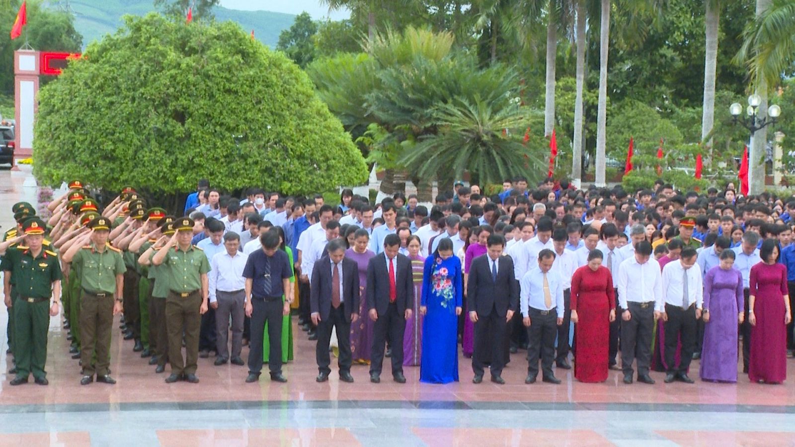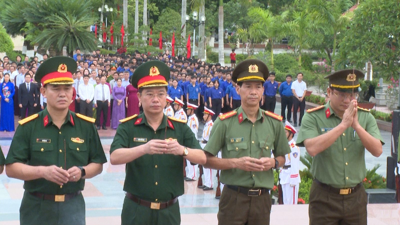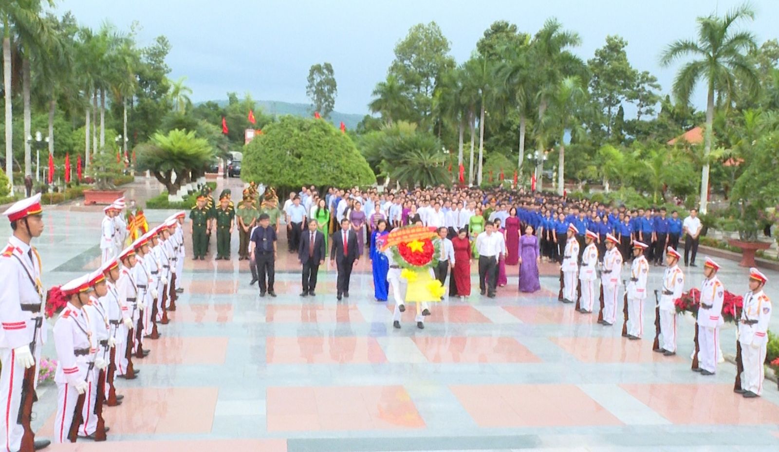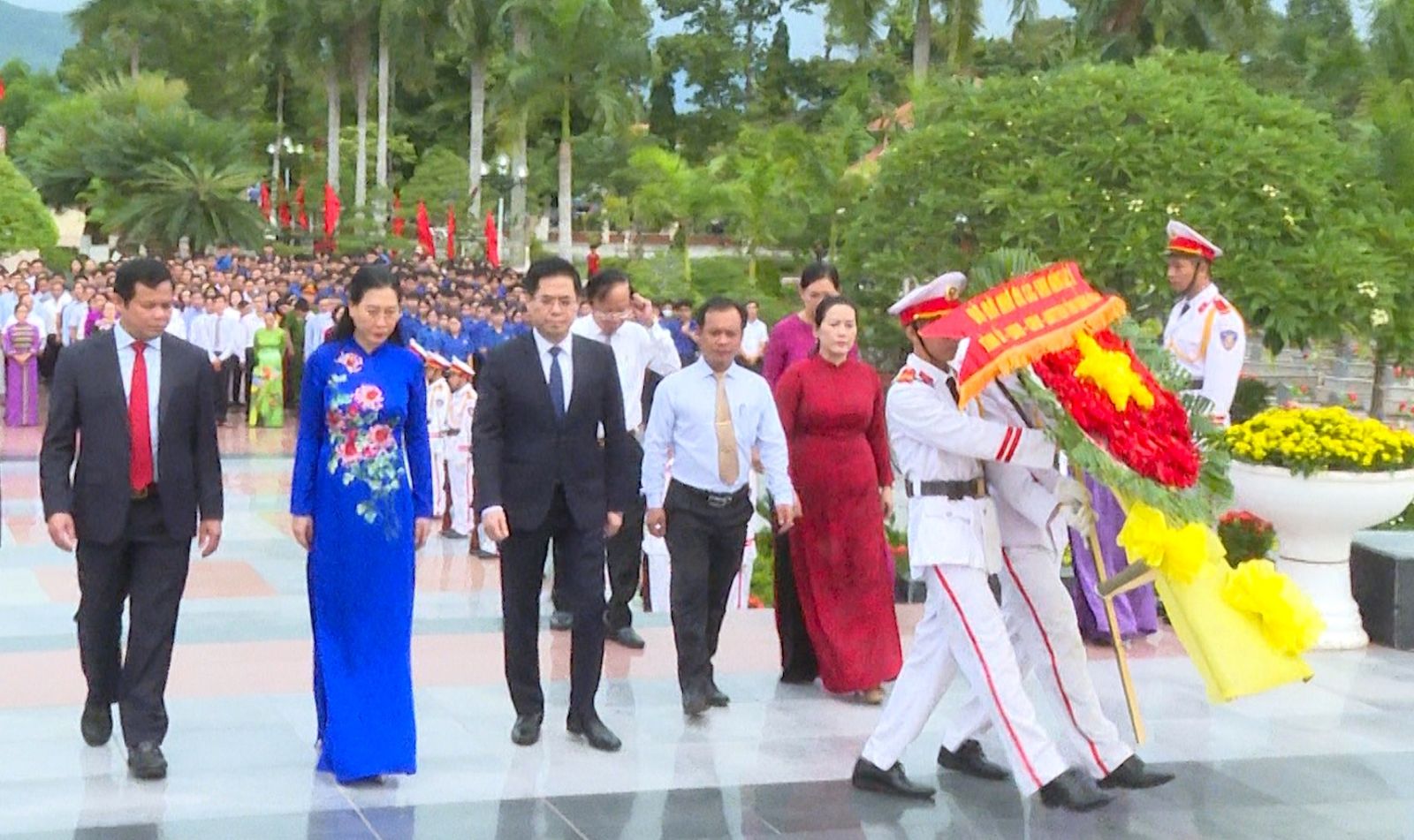 Ve slavnostní atmosféře delegáti s úctou nabídli květiny, vonné tyčinky a minutou ticha před Památníkem vlasti připomněli velký přínos hrdinných mučedníků, kteří se hrdinně obětovali za národní osvobození a znovusjednocení. Ušlechtilá oběť hrdinných mučedníků stvořila hrdinské a nezdolné činy; je hrdostí celé strany, celé armády a celého lidu a přispívá k výchově tradice nezdolného boje pro dnešní i budoucí generace.