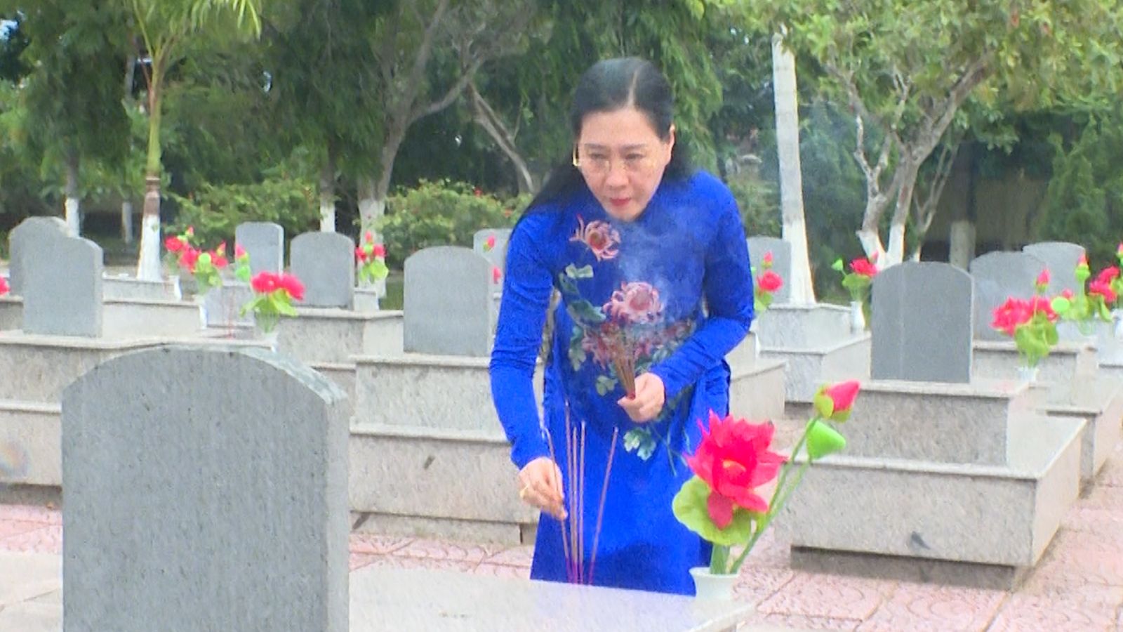 Provinční tajemník strany Bui Thi Quynh Van navštívil hroby mučedníků