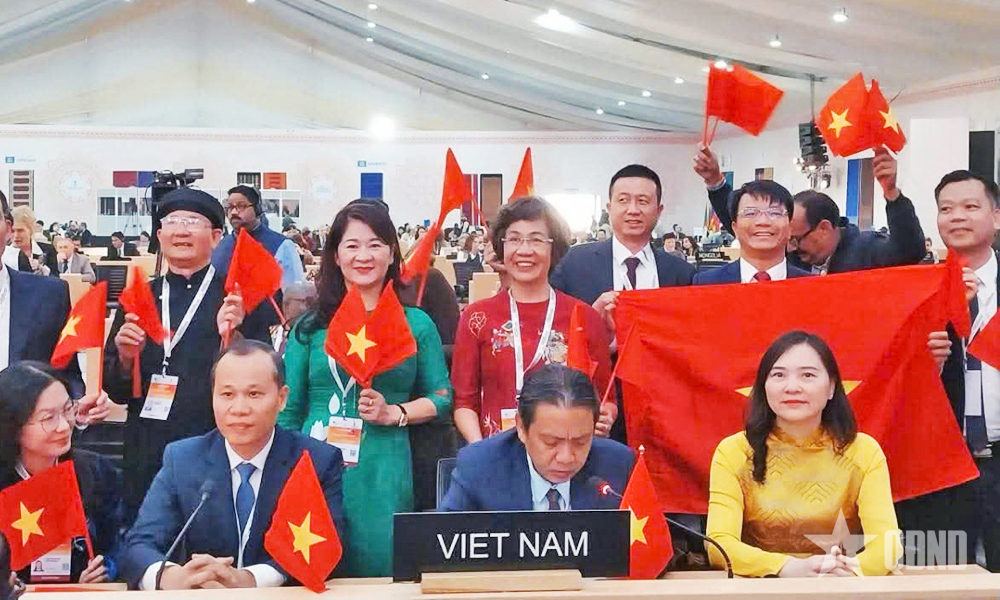 | Vietnamská delegace na 20. zasedání Mezivládního výboru Úmluvy o ochraně nehmotného kulturního dědictví UNESCO z roku 2003, které se konalo v Novém Dillí (Indie). |
