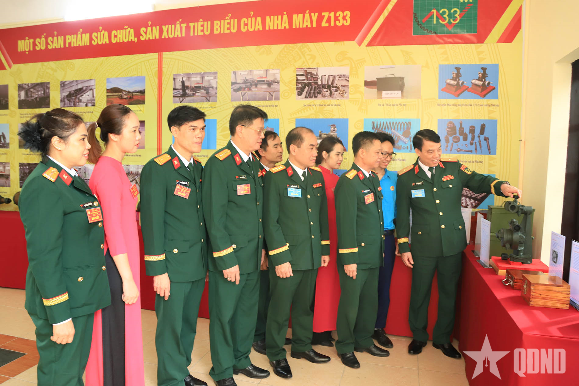 Generálmajor Vu Van Cuong, zástupce komisaře Generálního odboru logistiky a technologií, a delegáti navštívili prostor a vystavili typické produkty továrny, aby kongres přivítali. |
