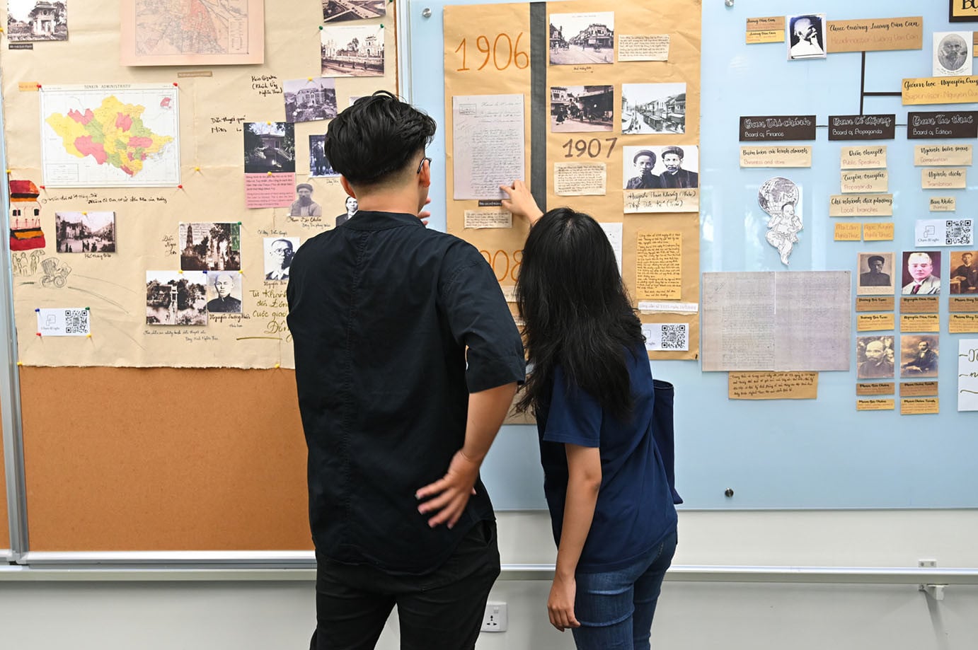 Práce studentů Fulbrightovy univerzity ve Vietnamu zobrazují historické milníky spojené s hnutím Dong Kinh Nghia Thuc.