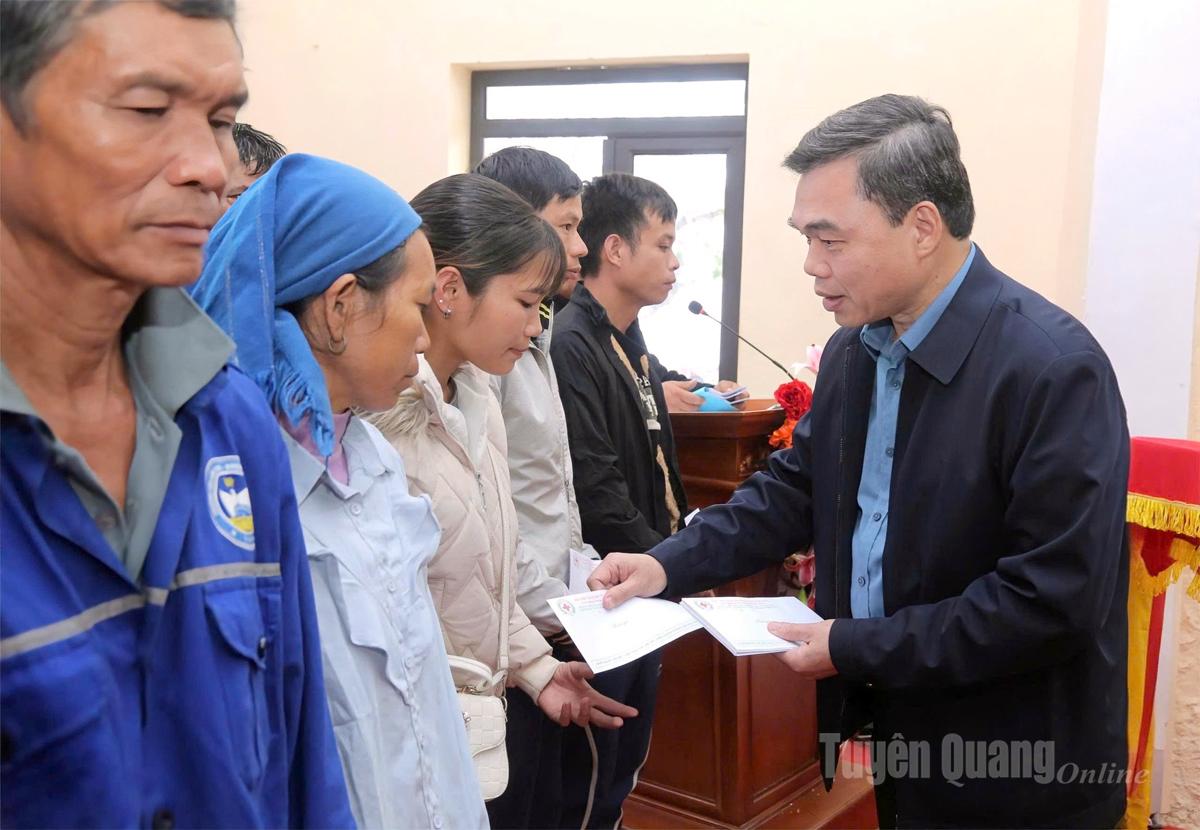 | Zástupce tajemníka provinčního výboru strany, předseda Výboru Vietnamské vlasti provincie Ma The Hong předal dary domácnostem postiženým přírodními katastrofami. |