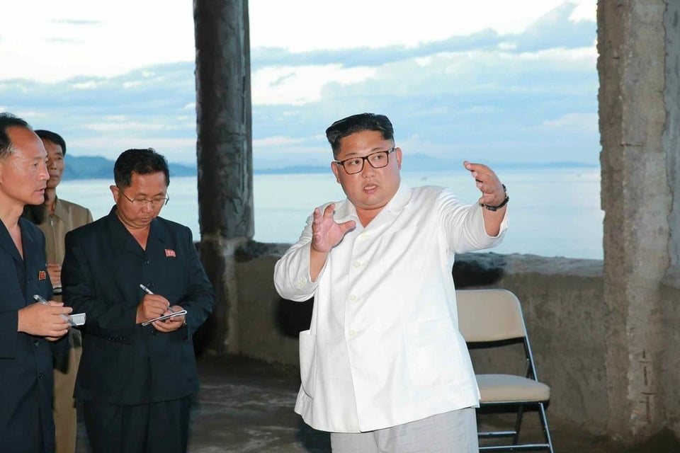 Severokorejský vůdce Kim Čong-un v roce 2018 provádí inspekci staveniště hotelu v Jombunjinu v provincii Severní Hamgjong. Foto: KCNA . |