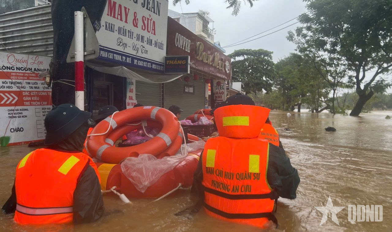 Včera v noci a dnes ráno byla hladina řek Huong, Bo a O Lau stále nad 3. stupněm pohotovosti. Město Hue je stále ponořeno do obrovského moře vody. V okresech Kim Long, An Cuu, Hung Loc, Vi Da, Hoa Chau... a nízko položených oblastech města Hue důstojníci a vojáci ozbrojených sil města Hue nadále stojí v oblasti, stojí při lidech, bez ohledu na den či noc, bez ohledu na vítr či déšť, a jsou pohotově přítomni v nejtěžších a nejnáročnějších místech, aby zachránili lidi a majetek. Byli jste a jste důvěrou a pevnou oporou lidu. V prudkých povodních a všech přírodních katastrofách jste vždy zářili kvalitami vojáků strýce Ho.
