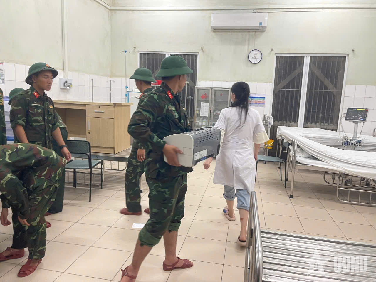 Po obdržení této zprávy mobilizovalo vojenské velitelství města Hue odpoledne 27. října 20 důstojníků a vojáků 20. průzkumné roty, aby neprodleně pomohli lékařům a zdravotnickému personálu s proaktivním přesunem ošetřovaných pacientů z výše uvedených oddělení. Pacienty naléhavě přesunuli z 1. patra do 2. patra, aby byla zajištěna bezpečnost a zabránilo se záplavám. Zároveň bylo lékařské vybavení a stroje umístěny vysoko nebo přemístěny na suché místo. Po odpoledni namáhavé práce byli všichni pacienti a lékařské vybavení centrální nemocnice Hue přemístěni na suché a bezpečné místo.