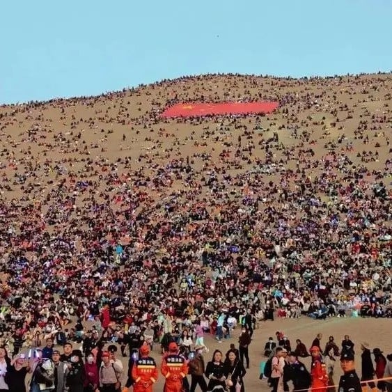 Podobná scéna se odehrála na písečných dunách malebné oblasti jezera Mingsha-Creekha v Dunhuangu v provincii Kan-su. Stovky velbloudů způsobily dopravní zácpu na pouštních písečných dunách.