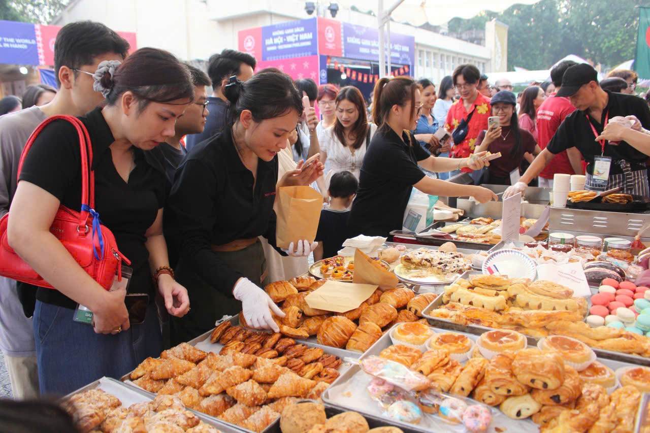 Francouzský stánek s občerstvením láká návštěvníky rozmanitostí slavného pečiva, což mnoha návštěvníkům ztěžuje pohyb a hledání místa k sezení kvůli omezenému počtu míst. Pečivo stojí od 10 000 VND za kus v závislosti na druhu.