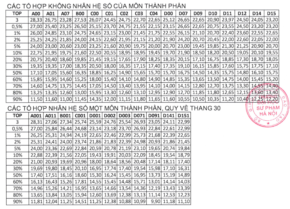 - Tổ hợp “hiếm”, có quá ít thí sinh, không đủ dữ liệu để tính toán phân vị.