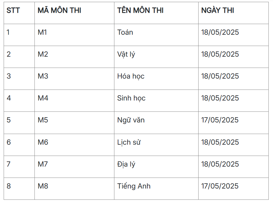 Đợt thi: 1; Mã đợt thi: D1; Năm thi: 2025;