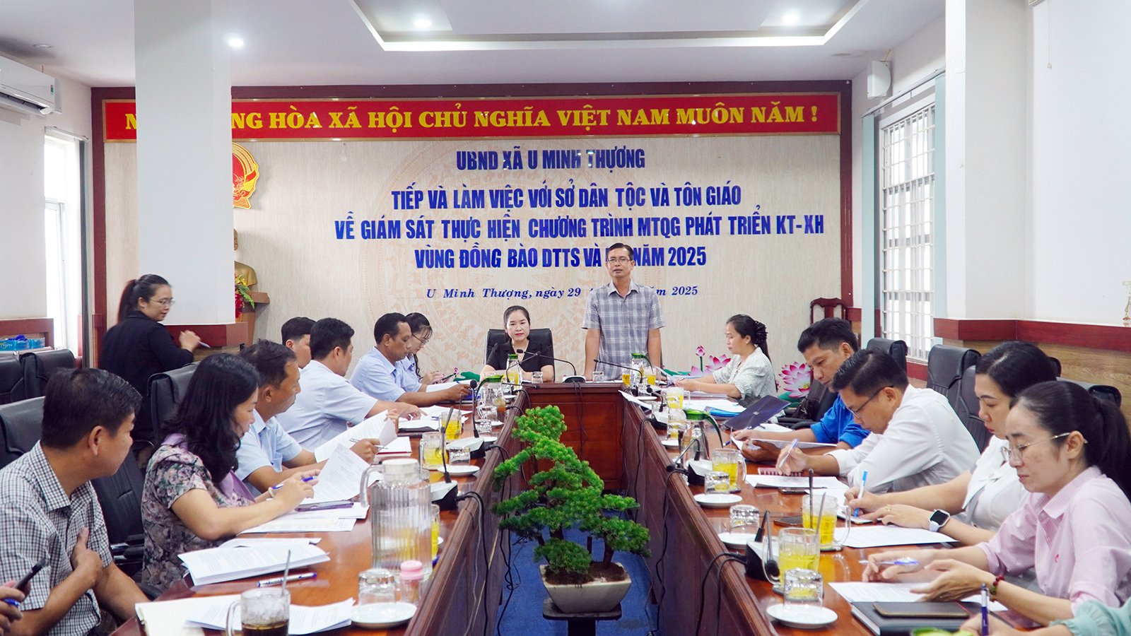 Nhằm kiểm tra, giám sát công tác lãnh đạo, chỉ đạo và tổ chức thực hiện chương trình tại các cơ quan, đơn vị và địa phương được phân công thực hiện các dự án, tiểu dự án và nội dung thành phần, Sở Dân tộc và Tôn giáo đã thành lập đoàn giám sát làm việc với các xã, phường trên địa bàn tỉnh. Theo đó, Sở Dân tộc và Tôn giáo đã thành lập 11 đoàn để giám sát 37 xã, phường trên địa bàn tỉnh. Tại các buổi giám sát, các phòng chuyên môn thuộc Sở kịp thời tháo gỡ khó khăn, hướng dẫn thủ tục và động viên tinh thần cán bộ cơ sở.