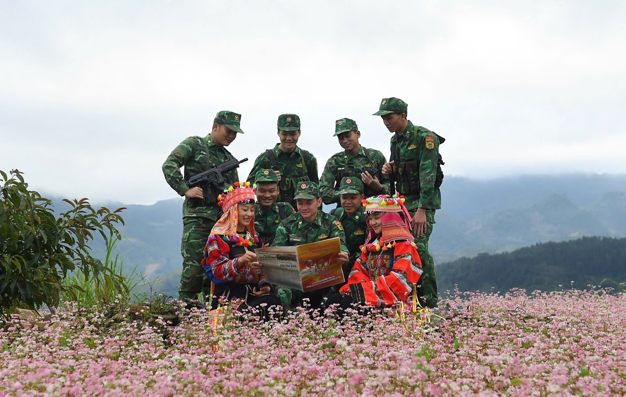 Những nụ cười rạng rỡ của người dân vùng biên trong sắc hoa tam giác mạch càng làm bừng sáng hình ảnh người chiến sĩ biên phòng-vừa kiên cường trong nhiệm vụ, vừa gần gũi, thân thiết trong lòng nhân dân. Giữa mùa hoa, màu xanh áo lính hòa cùng màu tím hồng của hoa tạo nên một bức tranh yên bình, thấm đượm tình quân dân nơi địa đầu Tổ quốc. Chị Hương ở bản Lô Lô Chải chia sẻ: "Tôi rất vui khi được đi tuần tra cùng cán bộ, chiến sĩ. Qua đó, tôi hiểu thêm về công tác quản lý biên giới, đồng thời nhận biết, phát hiện các hành vi xâm phạm lãnh thổ, giúp dân bản chủ động bảo vệ khu vực mình sống".