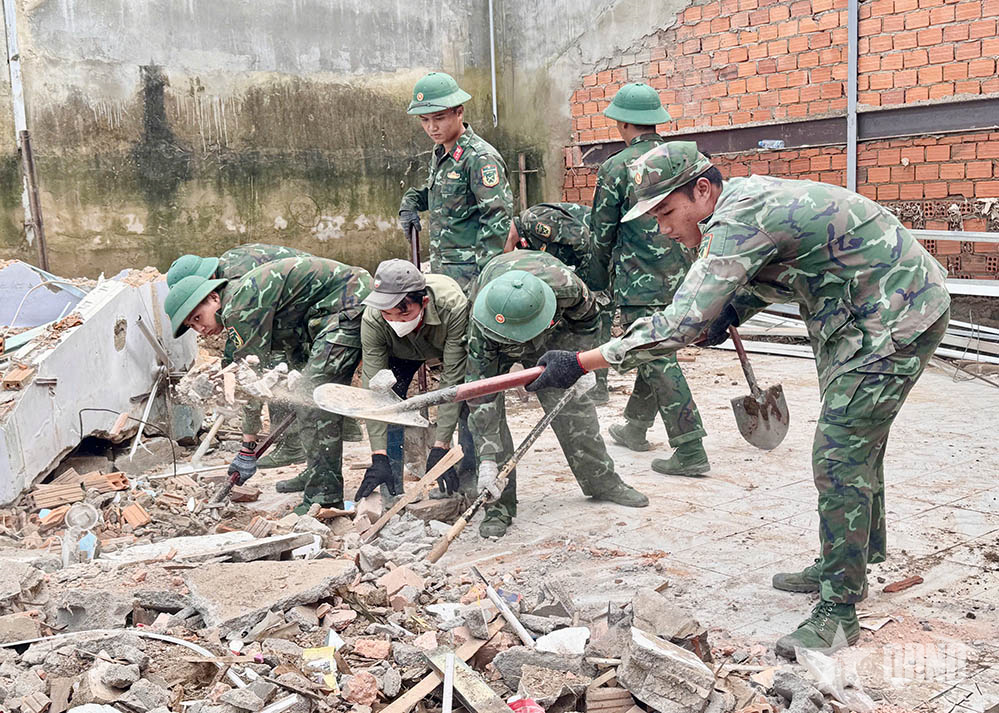Um die Aufgabe erfolgreich zu bewältigen, koordinierte die Einheit mit der Dong Hai One Member Limited Liability Company (Militärregion 7) die dringende Planung, den Entwurf und die Organisation des Baus von 3 Häusern für 3 Haushalte, die von Sturm und Überschwemmung schwer betroffen waren.