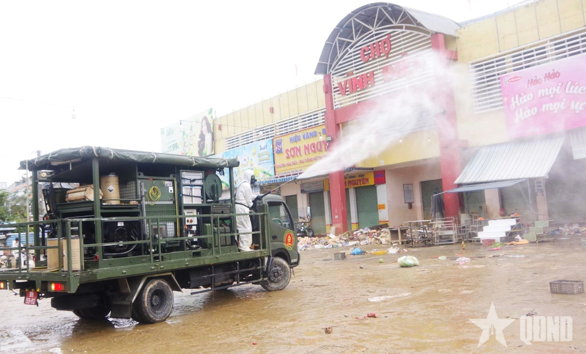 In der Gemeinde Dai Loc unterstützte das Bataillon 906 die von Überschwemmungen betroffenen Schulen bei der Desinfektion und Sanierung der Umgebung. Im Stadtteil Dien Ban führte das Zentralregionale Zentrum für die Reaktion auf chemische, biologische, radiologische und nukleare Gefahrenstoffe sowie Terrorismusbekämpfung Desinfektionsmaßnahmen im gesamten Bereich des Quang Nam Regionalkrankenhauses, des Volkskomitees des Stadtteils Dien Ban, des Verwaltungszentrums des Stadtteils Dien Ban, des Nguyen Van Troi Parks, des Vinh Dien Marktes und der Schulen durch.