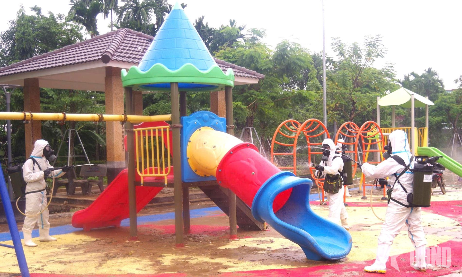 Desinfektionssprühung im Nguyen Van Troi Park (Stadtteil Dien Ban). |