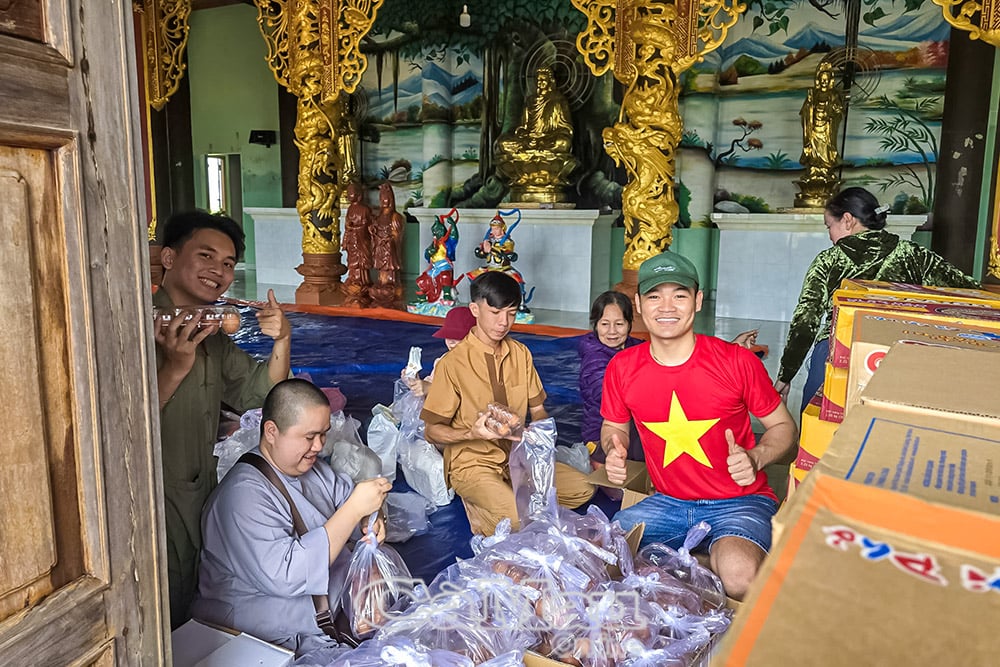 Getreu dem Motto „Hilf einander“ organisierten viele Klöster, Mönche und Buddhisten aktiv Spendenaktionen und transportierten Hilfsgüter in die Zentralregion. Große Pagoden in der Provinz dienten als Sammelstellen und zogen Hunderte von Buddhisten, Geschäftsleute und Privatpersonen an, die Reis, Instantnudeln, Trinkwasser, Decken, Medikamente und viele andere lebensnotwendige Dinge brachten.