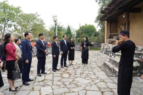 In Zusammenarbeit mit dem Vorstand, den Verantwortlichen und den Mitarbeitern des Museums hörte sich der Provinzparteisekretär Berichte an und tauschte sich mit ihnen über die Arbeit zur Erhaltung und Förderung kultureller Werte im Zusammenhang mit der Tourismusentwicklung sowie über Vorschläge zur Koordinierung zwischen dem Museum und der Provinz Thai Nguyen in der kommenden Zeit aus.