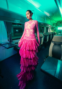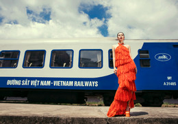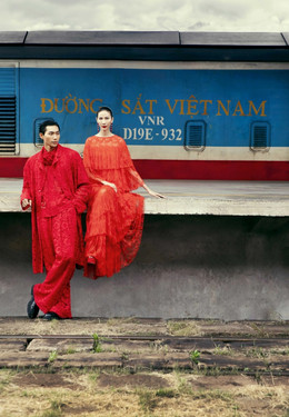 Vor dem Launch der Cruise 2024 Kollektion schossen Vu Ngoc und Son ein Mode- Fotoshooting am Bahnhof Saigon, wo die Show stattfinden wird. Das Designerduo setzt weiterhin auf leuchtende Farben mit ihrer persönlichen Note.