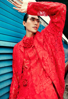 Herren-Spitzendesigns, wie moderne Oversize-Mäntel und Hemden im Vollfarbtrend, sind interessante Highlights dieser Kollektion.