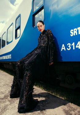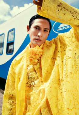 „Dies ist nicht das erste Mal, dass wir das Bild eines Zuges in der Mode verwenden. Aber es wird ein farbenfroher Zug sein, wie die Emotionen einer strahlenden Jugend. Die Einführung eines Designs mit Spitzenmaterial ist auch Teil unserer Absicht, das Vertraute durch eine andere Linse zu harmonisieren“, erklärte Designer Dinh Truong Tung.