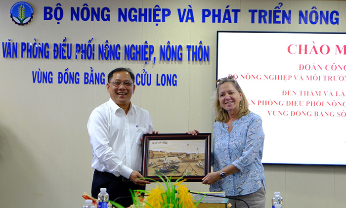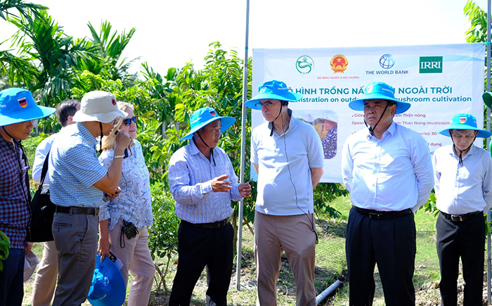 Anschließend besuchte die Delegation das Büro für die Koordinierung der ländlichen Landwirtschaft im Mekong-Delta. Dort stellte Vizeminister Tran Thanh Nam das Programm „Eine Gemeinde, ein Produkt“ (OCOP) vor, das durch die Verbesserung der Qualität und des Wertes lokaler Produkte zur Entwicklung der ländlichen Wirtschaft beiträgt. Gleichzeitig erörterte er mit der Delegation Fragen im Zusammenhang mit dem Projekt „Nachhaltige Entwicklung von 1 Million Hektar hochwertigem und emissionsarmem Reisanbau im Mekong-Delta im Rahmen eines grünen Wachstums bis 2030“. Vizeminister Tran Thanh Nam betonte, dass der größte Erfolg des Projekts in einem Wandel der Produktionsmentalität von Landwirten und Genossenschaften liege. Er schlug vor, dass die Weltbank Vietnam in der kommenden Zeit weiterhin bei der Ausweitung des Projekts unterstützt. Zudem solle die Unterstützung von vietnamesischen Unternehmen und Genossenschaften durch vorzugswürdige grüne Kredite in Betracht gezogen werden, um die Wertschöpfung durch die Nutzung landwirtschaftlicher Nebenprodukte zu fördern und so das Einkommen der Landwirte zu steigern.