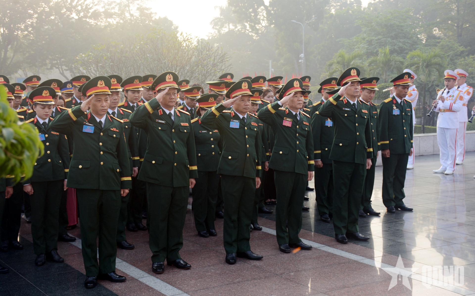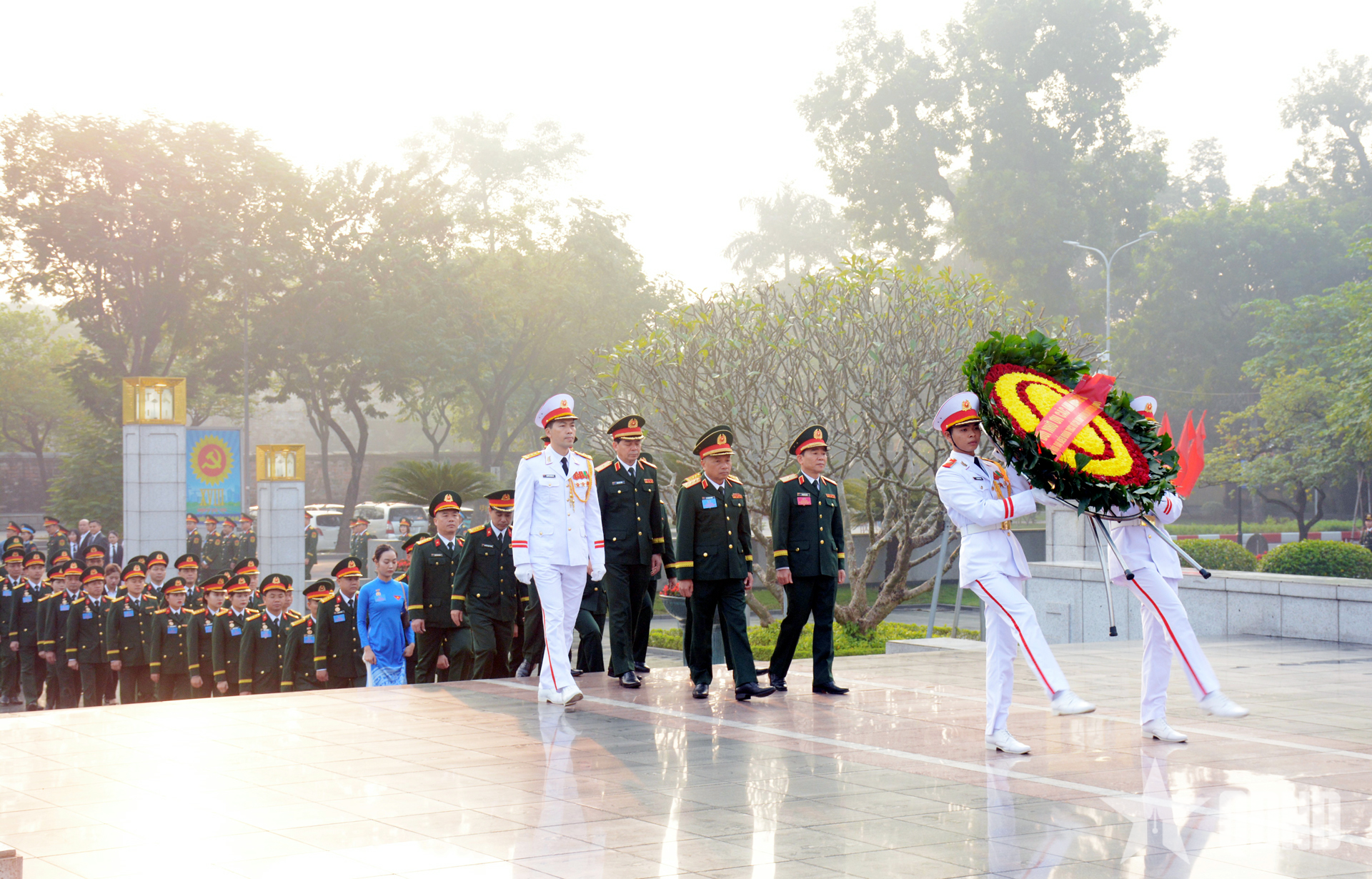 Anschließend nahmen Generalleutnant Le Quang Minh und die Delegation an der Zeremonie teil, um Onkel Ho über die erzielten Erfolge zu berichten und Blumen zum Gedenken niederzulegen, und besuchten das Mausoleum von Präsident Ho Chi Minh .