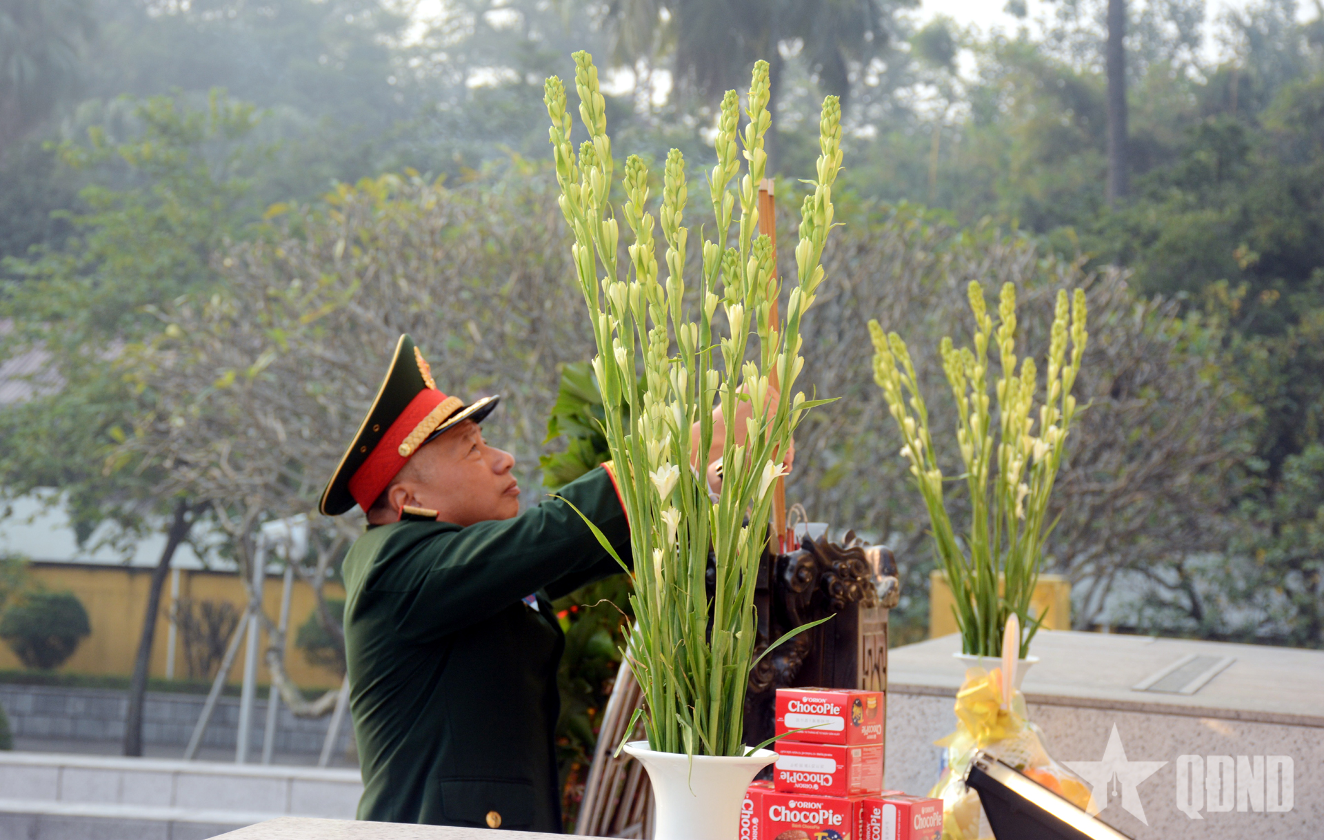 | Der hochrangige Generalleutnant Le Quang Minh opferte Weihrauch zum Gedenken an die heldenhaften Märtyrer. |