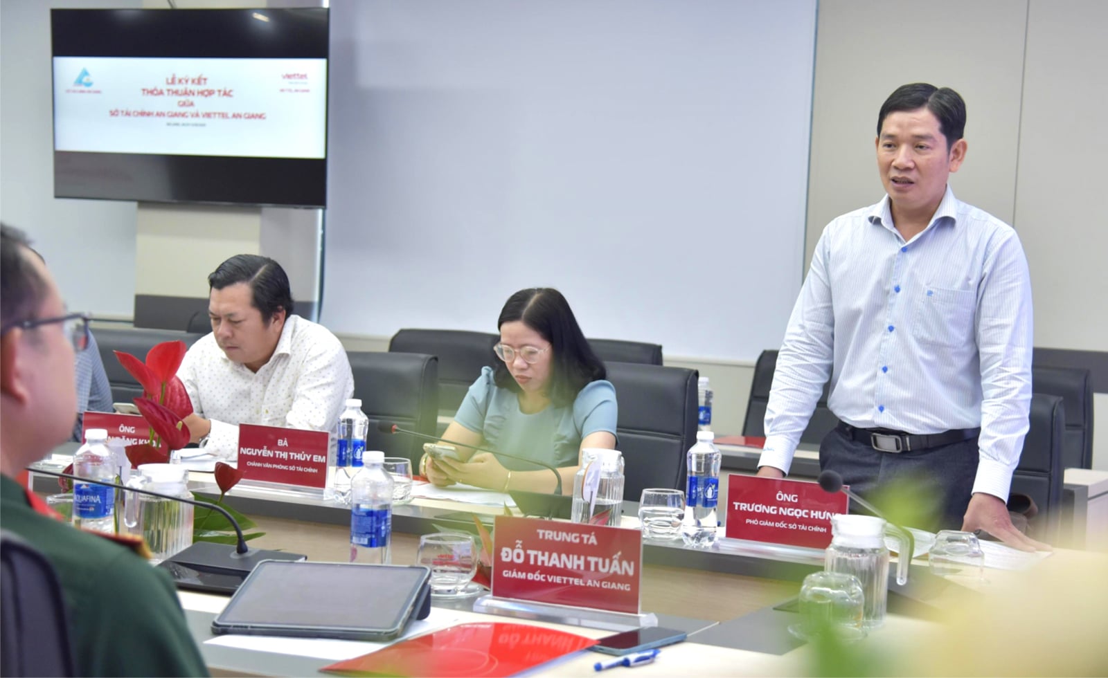 Der stellvertretende Direktor des Finanzministeriums der Provinz An Giang, Truong Ngoc Hung, hielt bei der Unterzeichnungszeremonie eine Rede.