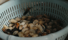 Der westliche Gast verriet, dass diese Puppe aus einem „riesigen“ Wespennest stammte und etwa 80–90 kg wog. Die Einheimischen hatten sie über ein Jahr lang aufgezogen und gepflegt. Sie werden zu vielen verschiedenen Gerichten verarbeitet, doch am leckersten und beliebtesten ist die mit Zitronenblättern gebratene Puppe.
