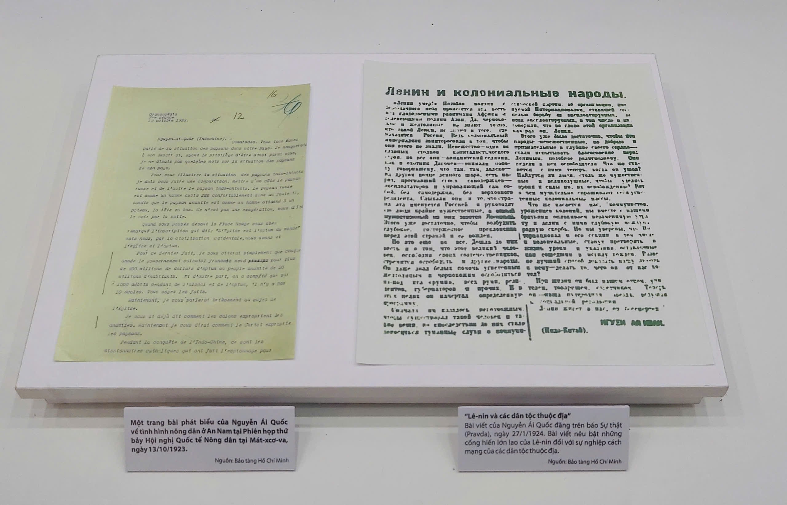 Mit fast 300 sorgfältig ausgewählten Fotos, Dokumenten und typischen Artefakten, darunter seltene und neu gesammelte Dokumente und Artefakte, stellt die Sonderausstellung „Ho Chi Minhs Fußspuren im Heimatland der Oktoberrevolution“ der Öffentlichkeit die Reise auf den revolutionären Spuren von Nguyen Ai Quoc – Ho Chi Minh in Russland in den Jahren 1923–1924, 1927 und 1934–1938 vor, als er reiste, um einen Weg zur Rettung des Landes zu finden, sowie die Reise auf den Spuren der Freundschaft, die Präsident Ho Chi Minh in seiner Funktion als Präsident der Demokratischen Republik Vietnam (heute Sozialistische Republik Vietnam) in der gesamten Sowjetunion hinterließ.