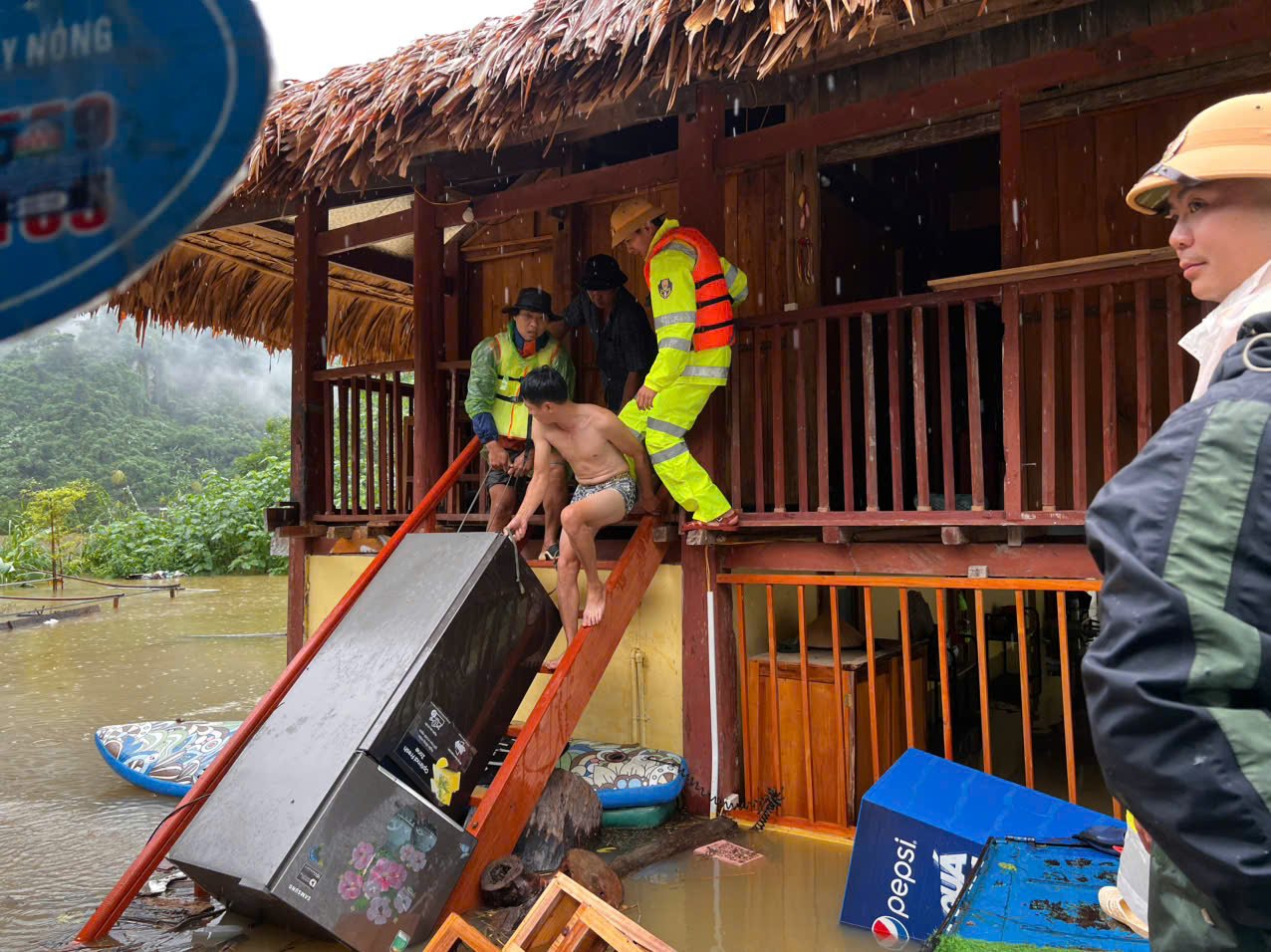 Die Verkehrspolizei half den Menschen der Gemeinde Ba Be, ihr Eigentum in Sicherheit zu bringen.