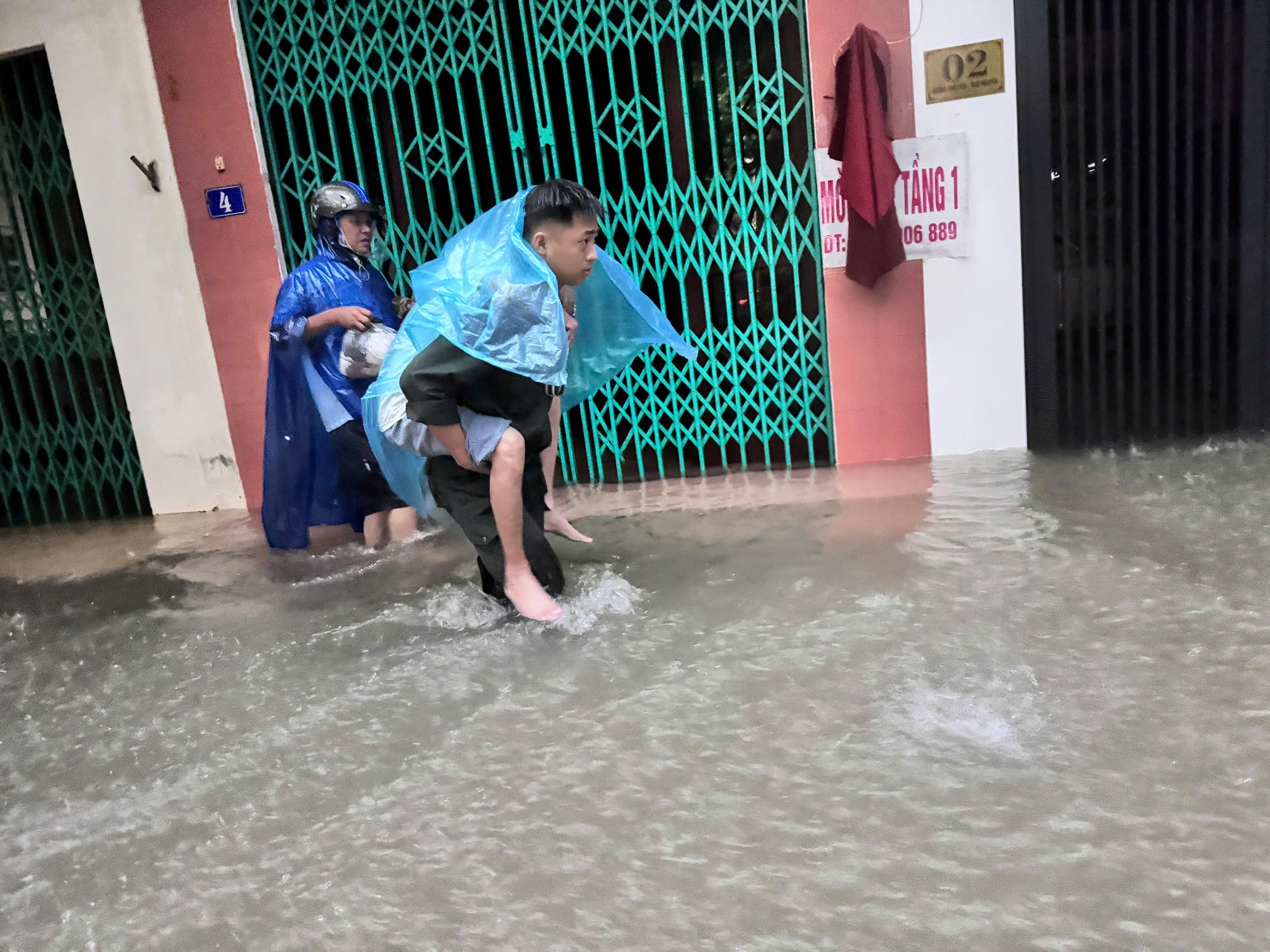 Mobile Polizeikräfte helfen den Menschen im Bezirk Phan Dinh Phung, sich in Sicherheit zu bringen.