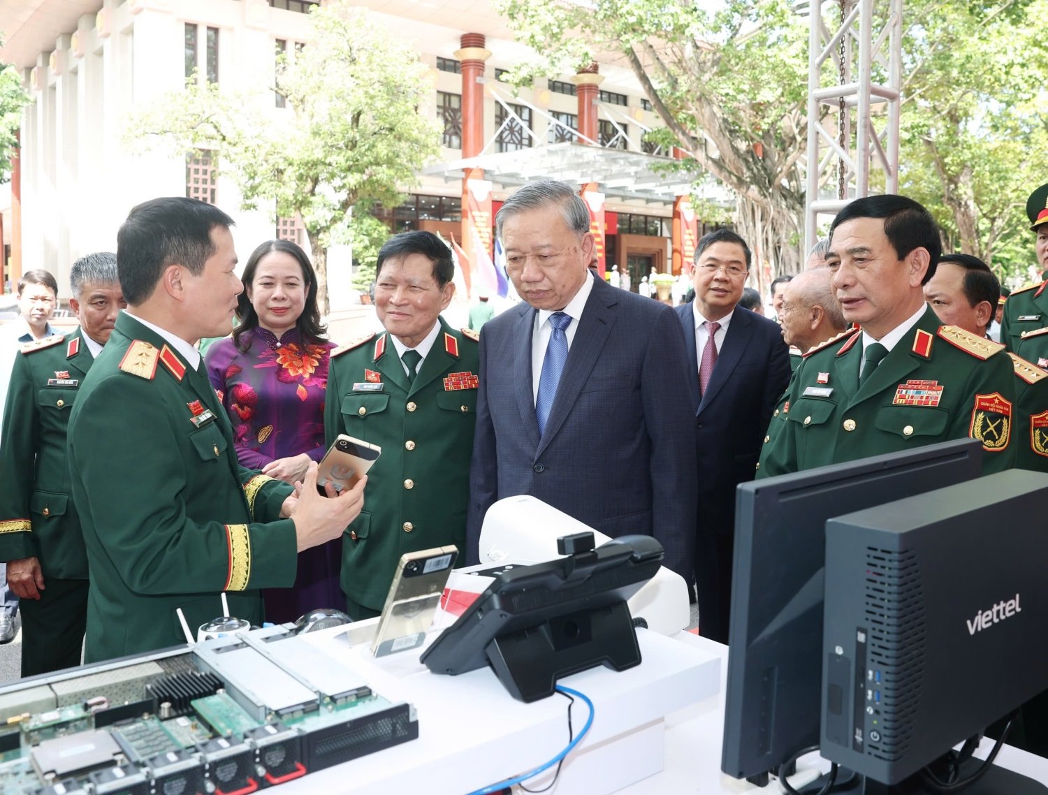 Generalsekretär To Lam besucht den Produktpräsentationsbereich der Viettel- Gruppe auf dem 11. Militärsimulationskongress._Foto: viettelfamily.com