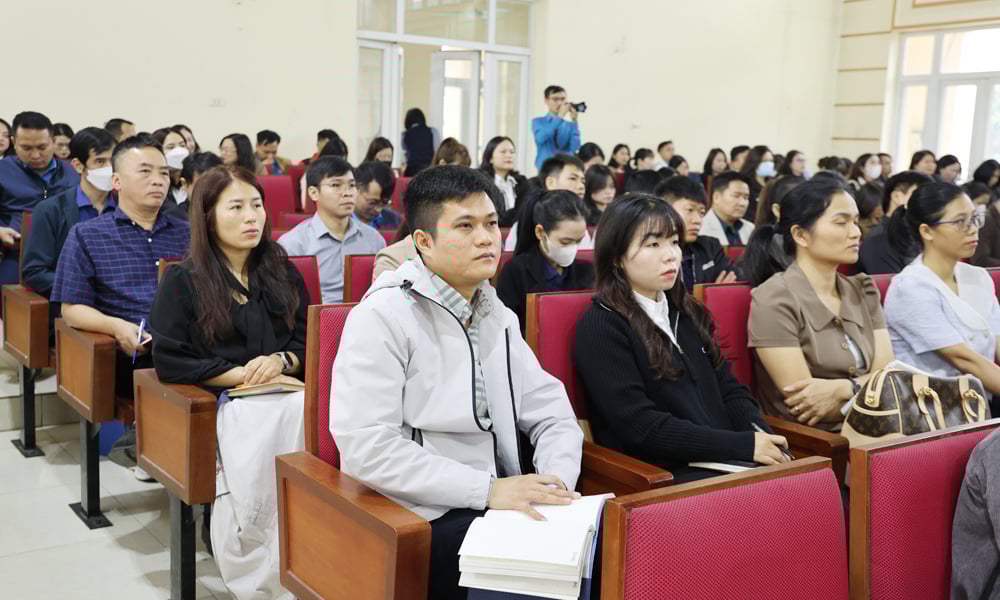 Auf der Konferenz erhielten die Delegierten Vorträge zu zwei wichtigen und praktischen Themen von Genosse Nguyen Manh Kien, stellvertretender Leiter der Abteilung für Arbeitsbeziehungen des Vietnamesischen Allgemeinen Gewerkschaftsbundes , und Doktor Oberst Ta Duc Ninh, stellvertretender Direktor des Instituts für Forschung und Anwendung der Drogenprävention und -bekämpfung.