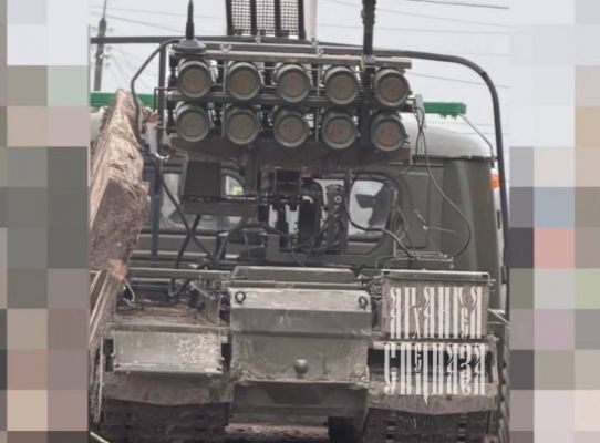 Das Foto zeigt einen mit zehn Flammenwerfern ausgestatteten Kettenpanzerroboter vom Typ Kurier. Der Roboter wird auf einer LKW-Ladefläche transportiert. „ Dieses Fahrzeug bewegt sich zur Frontlinie. Wir werden die Richtung nicht nennen, damit es eine Überraschung für die ukrainischen Streitkräfte wird, die sie offensichtlich erwartet haben “, schrieb der Telegram-Kanal „Archangel Spetsnaz“.