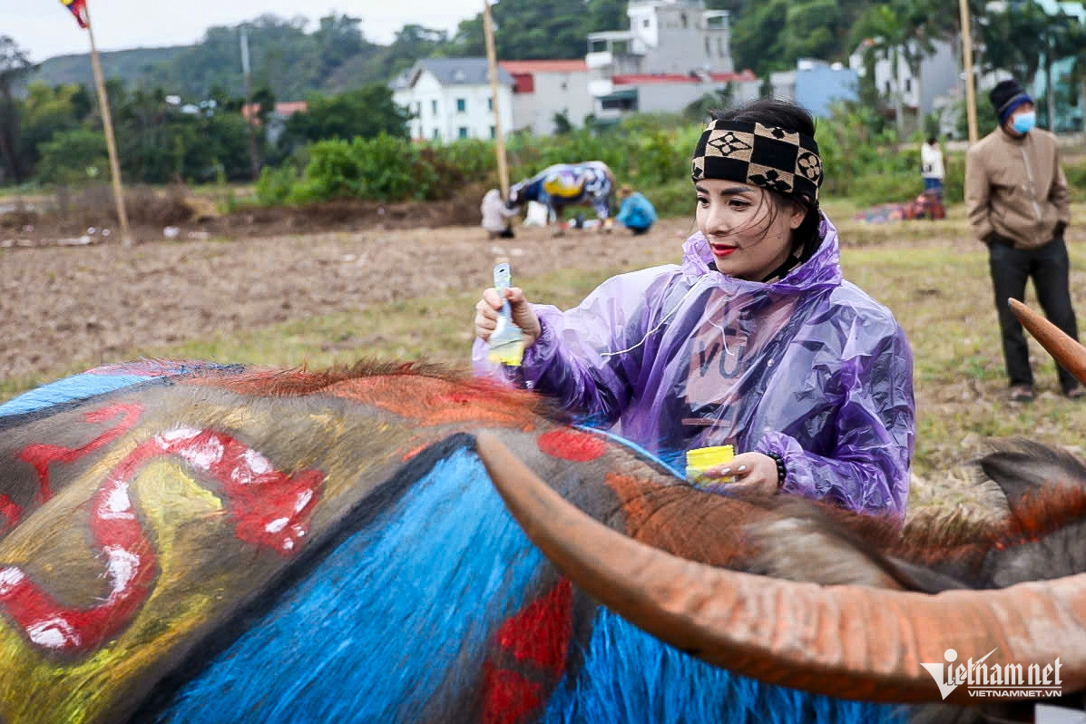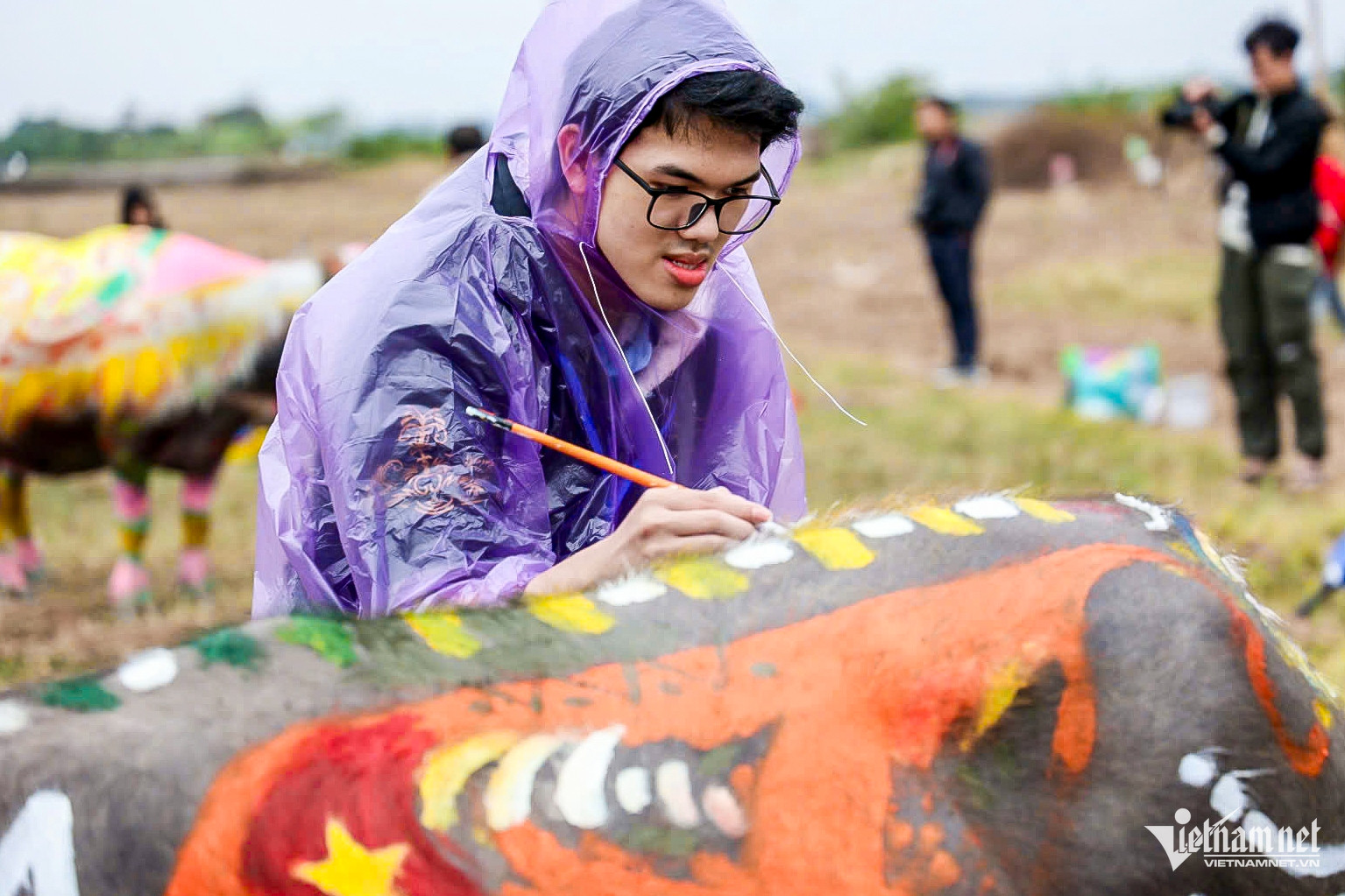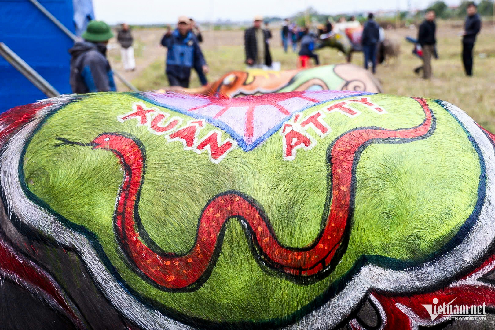 Der Maler Hoang Trung Dung (aus Thai Binh ) sagte: „Für die Teilnahme am Wettbewerb musste ich sorgfältig Farben auswählen, die für die Büffelhaut verträglich sind, um Juckreiz und Beschwerden bei den Büffeln zu vermeiden. Beim Malen musste ich den Druck meiner Hand anpassen, damit die Farbe gleichmäßig haftete.“
