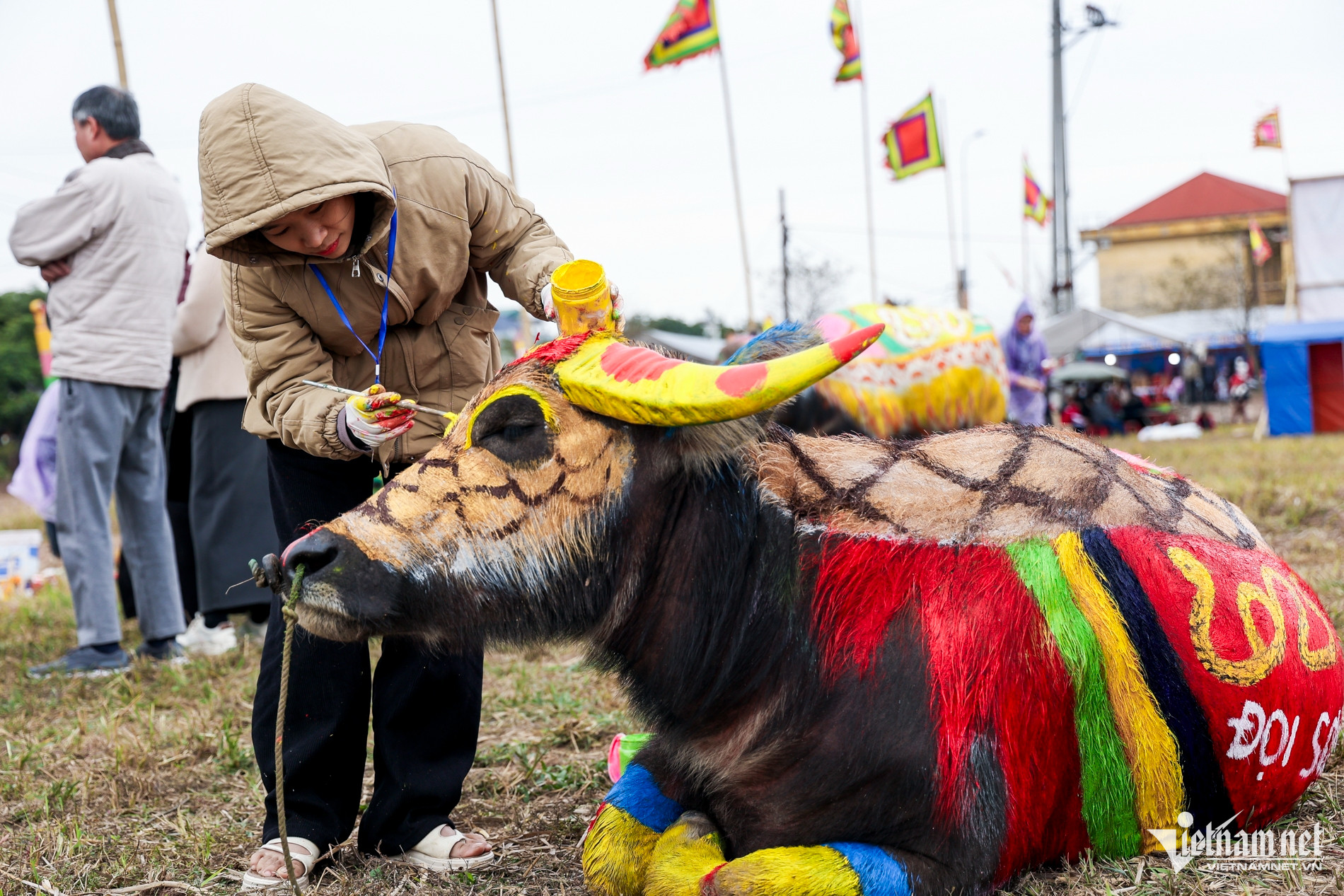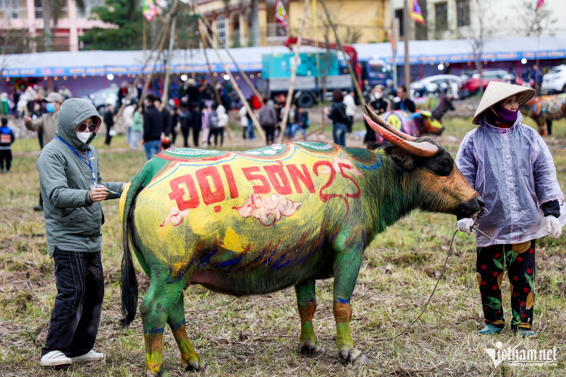 Der Büffelmalwettbewerb fand am sechsten Tag des Tet-Festes statt. In diesem Jahr nahmen 20 Künstler und Künstlergruppen aus vielen Provinzen und Städten am Wettbewerb teil. Die „ausgewählten“ Büffel, gesund und schön, wurden zu „Malstaffeleien“, auf denen die Künstler frei ihrer Kreativität freien Lauf lassen konnten.